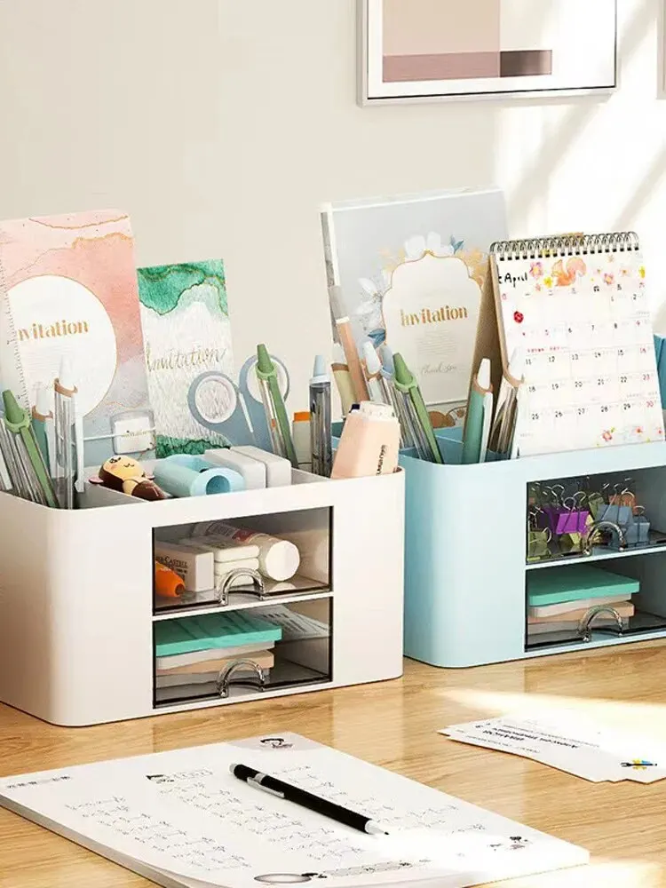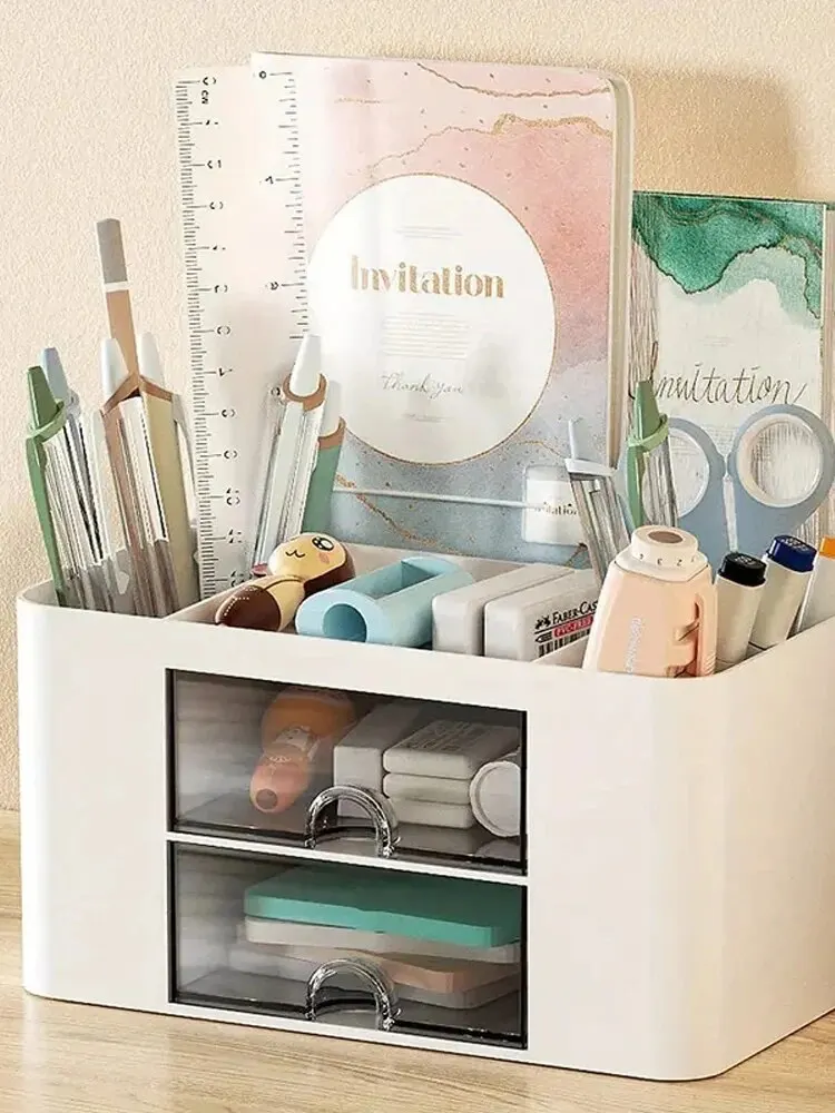 1PC Pen Organizer With 2 Drawer Multi-Functional Pencil Holder For Desk Holder Storage Box For Desk Office Supplies Vanity Table