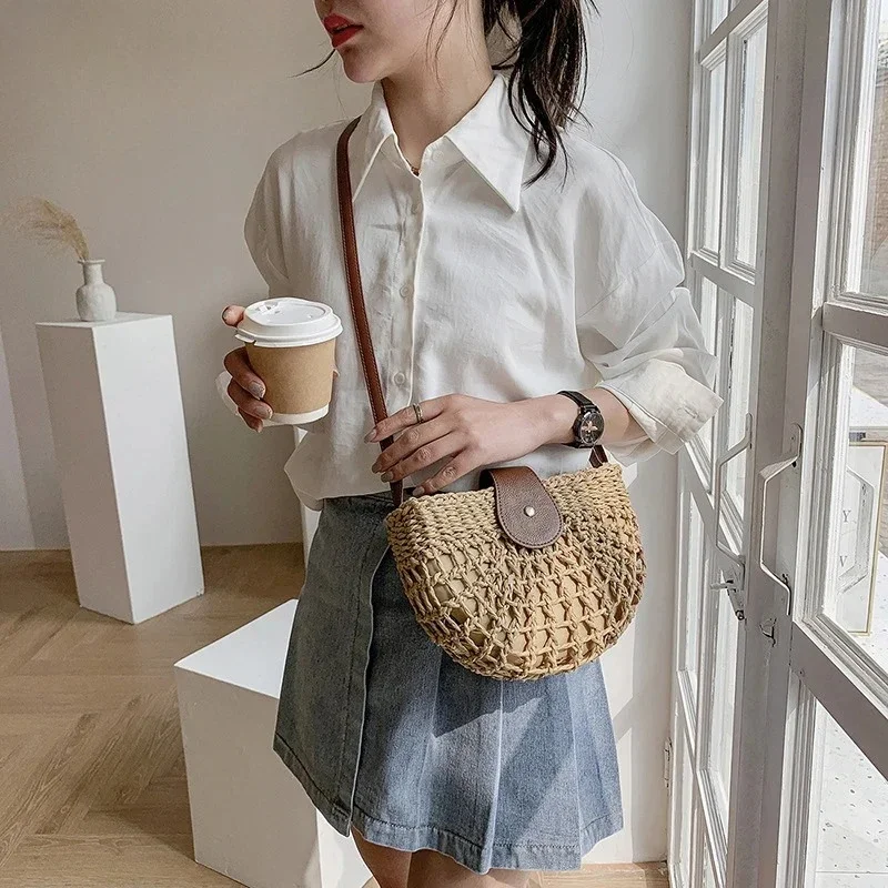 Summer Straw Bag For Women Fashion Semicircle Crossbody Bags Rattan Handmade Messenger Handbag Travel Beach Bags Tote