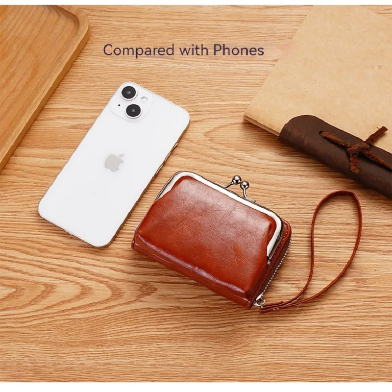 Vintage Women Card Holder Wallet Small Clutch Bag with Lanyard Large Capacity Ladies Leather Zipper Multi Card Slot Coin Purse