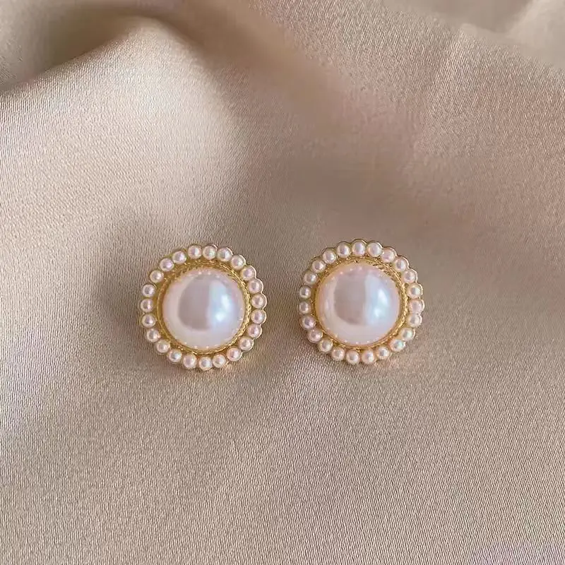 Vintage Imitation Pearl Stud Earrings for Women French Elegant Internet Celebrity Earring Luxury Fashion Jewelry Wedding Bride