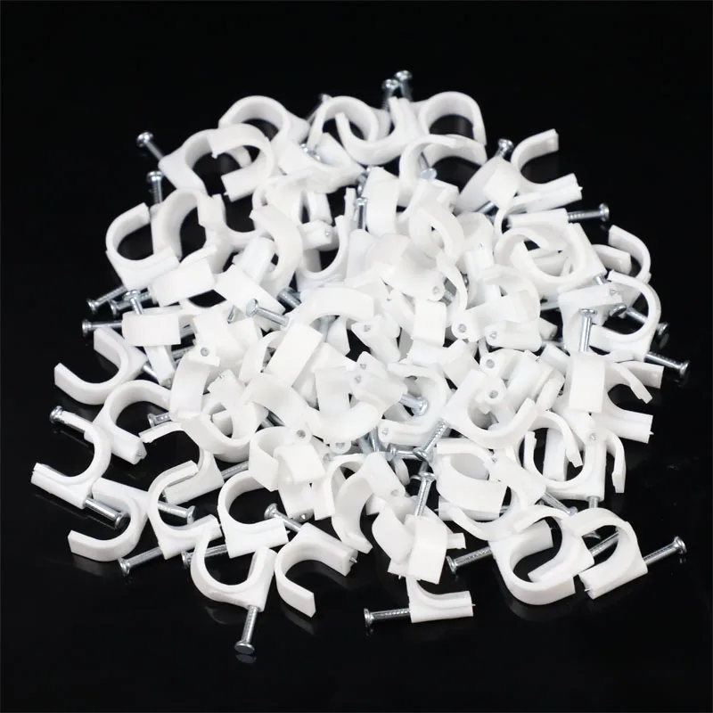 100pcs Cable Clips 4/6/8/10/12/14/16/20mm Cable Wire Clips Nail In Cable Clips Cable Tacks Coaxial Nail Clamps Nails For Cords