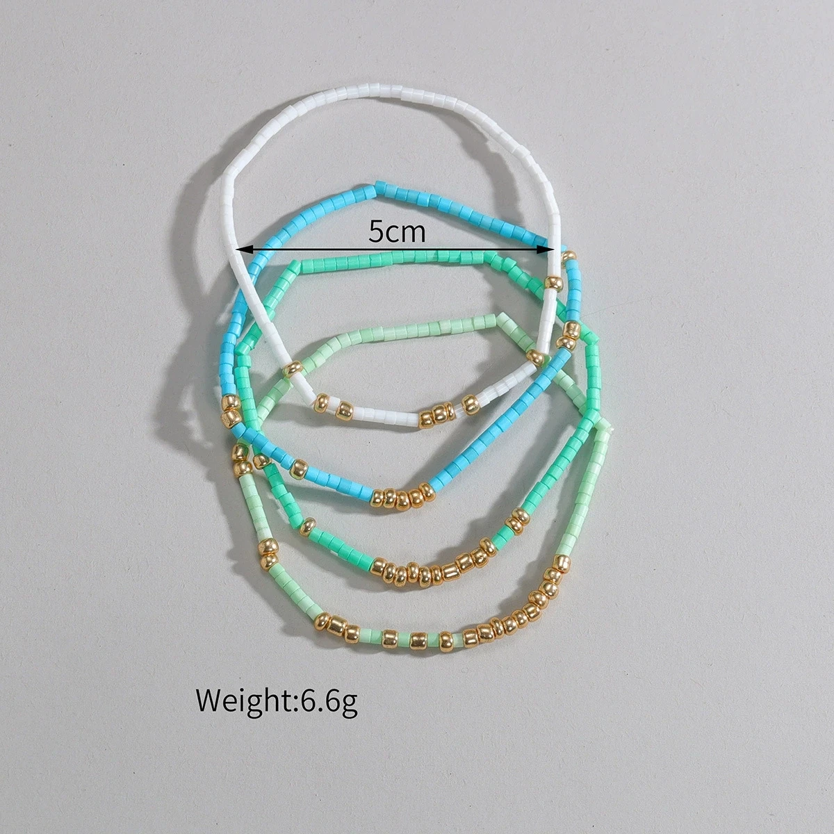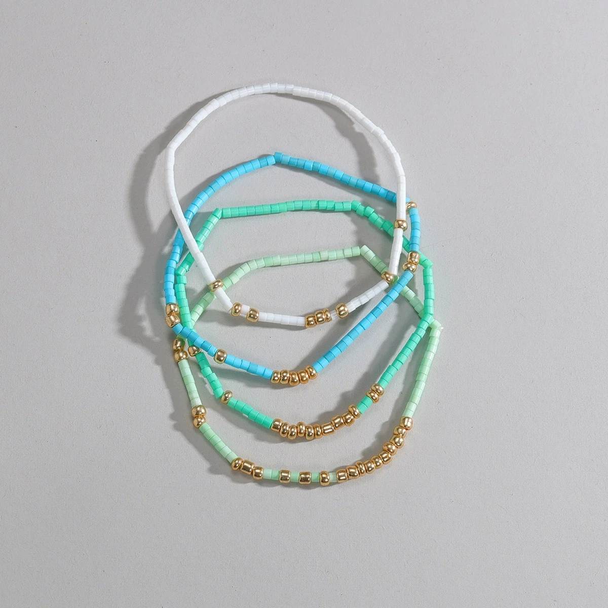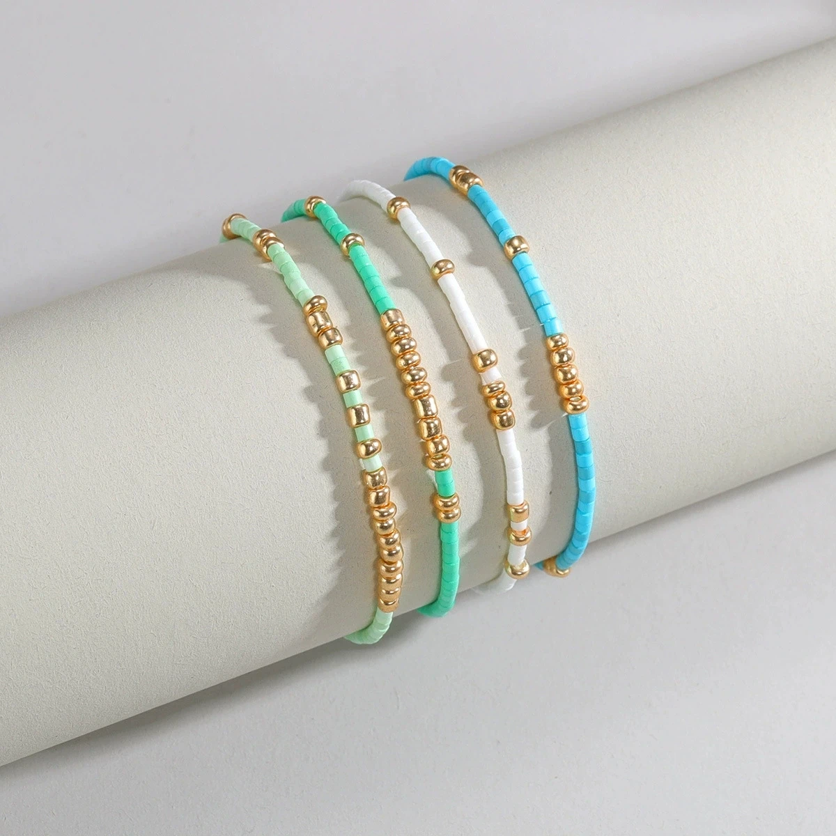 4Pcs Bohemia Seedbeads Stretch Bracelet Set For Women Gold Color Elastic Chain Handmade Bangle Female Summer Vacation Jewelry