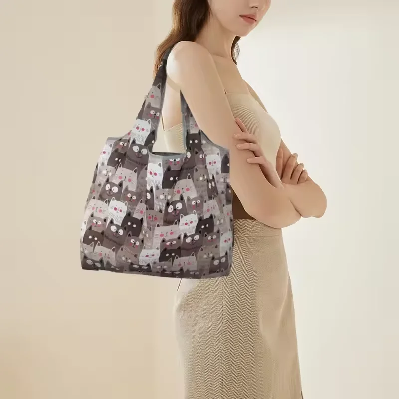 Large Capacity Folding Shopping Bag Environmentally Friendly Folding Bag Creative Portable Printed Hand-held Storage Bag