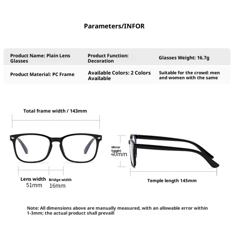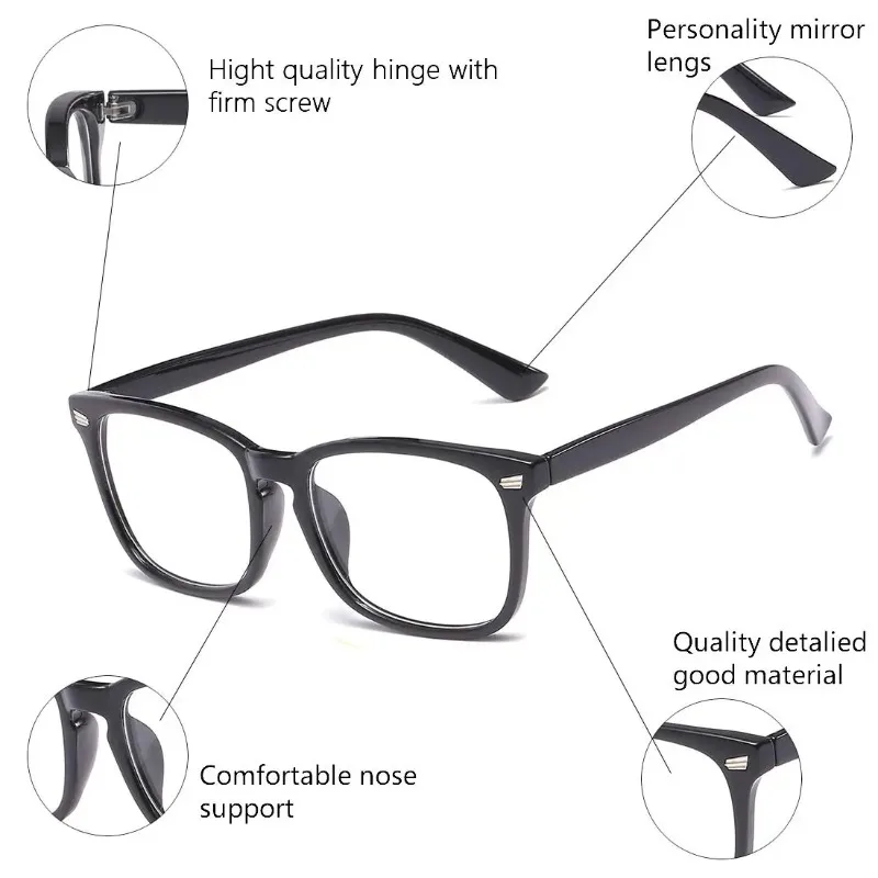 Anti Blue Light Glasses Square Eyeglasses Frame Anti Ultraviolet Flat Light Glasses Computer Game Glasses Smooth Eyeglass Legs