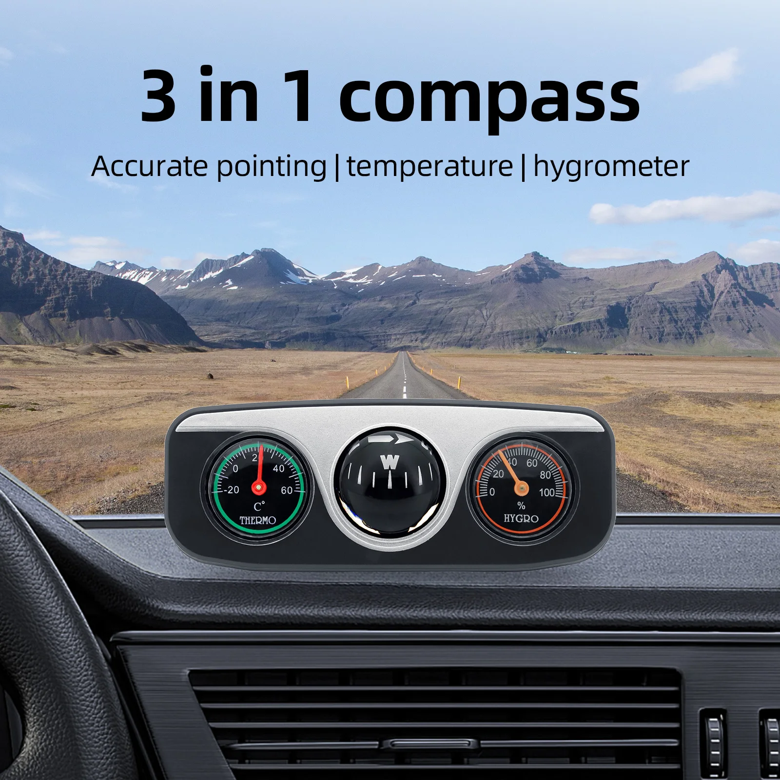 Car Ornaments Decoration 3 in 1 Guide Ball Compass For Auto Boat Vehicles Thermometer Compass Hygrometer Interior Accessories