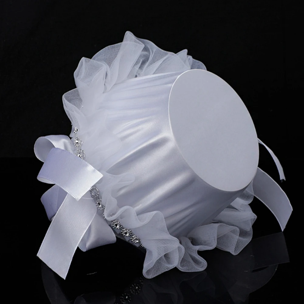 Wedding Baskets White Flower Girl Basket For Flower Bride/Kids Hand Held Bow-knot Lace Baskets Wedding Ceremony Party Decor