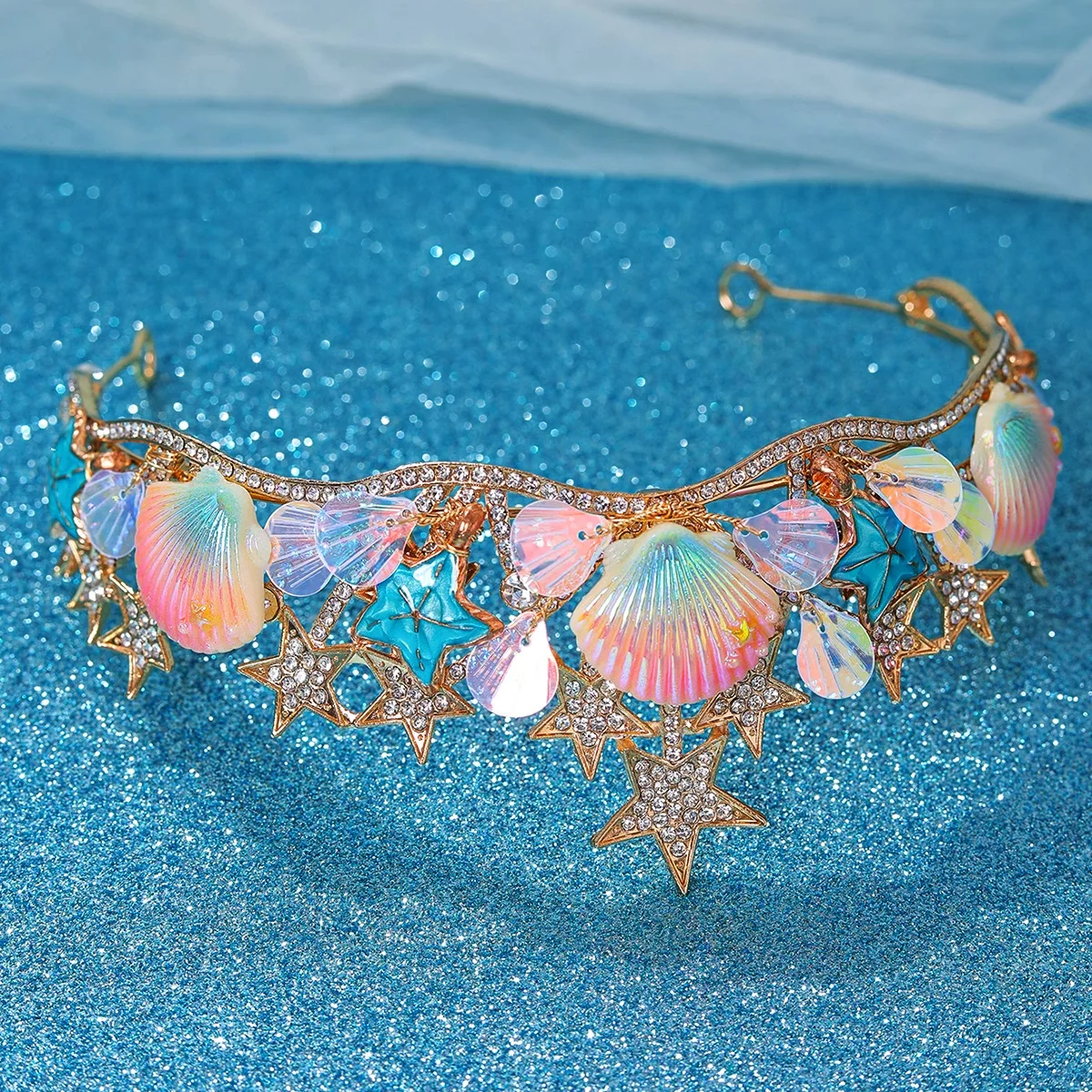 aliexpress , ali , shop , ali shop , online , store , online shop , online store , buy , sell , Colored seashells Crown Halloween Ocean Style Costume Seashell Starfish Hair Accessories for Women Girls Birthday Party Tiaras