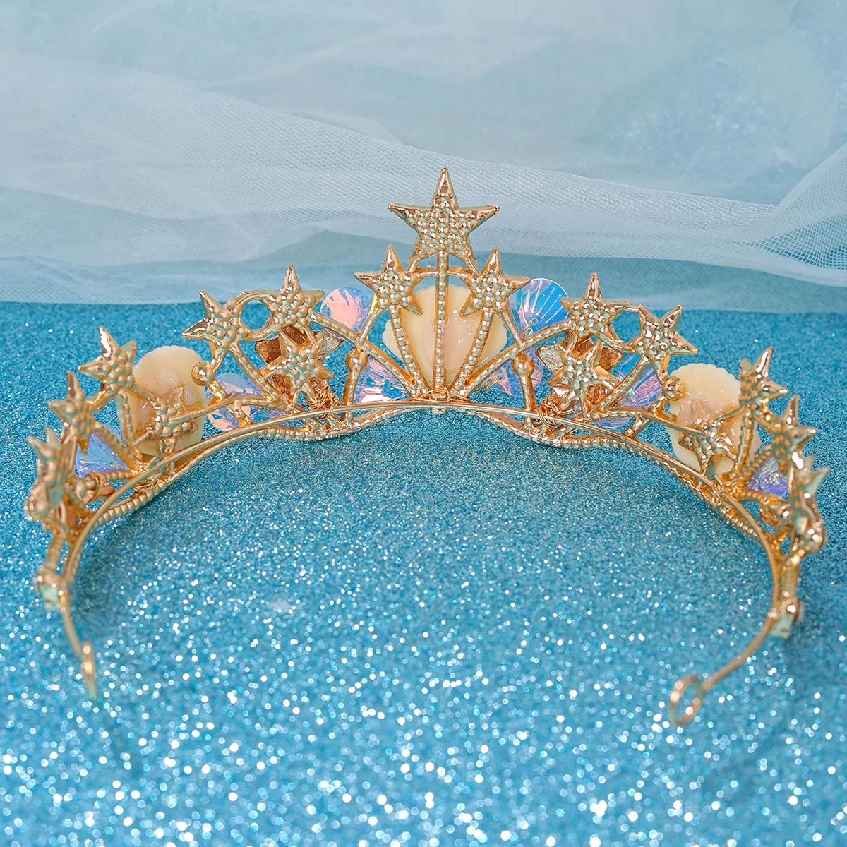 Colored seashells Crown Halloween Ocean Style Costume Seashell Starfish Hair Accessories for Women Girls Birthday Party Tiaras
