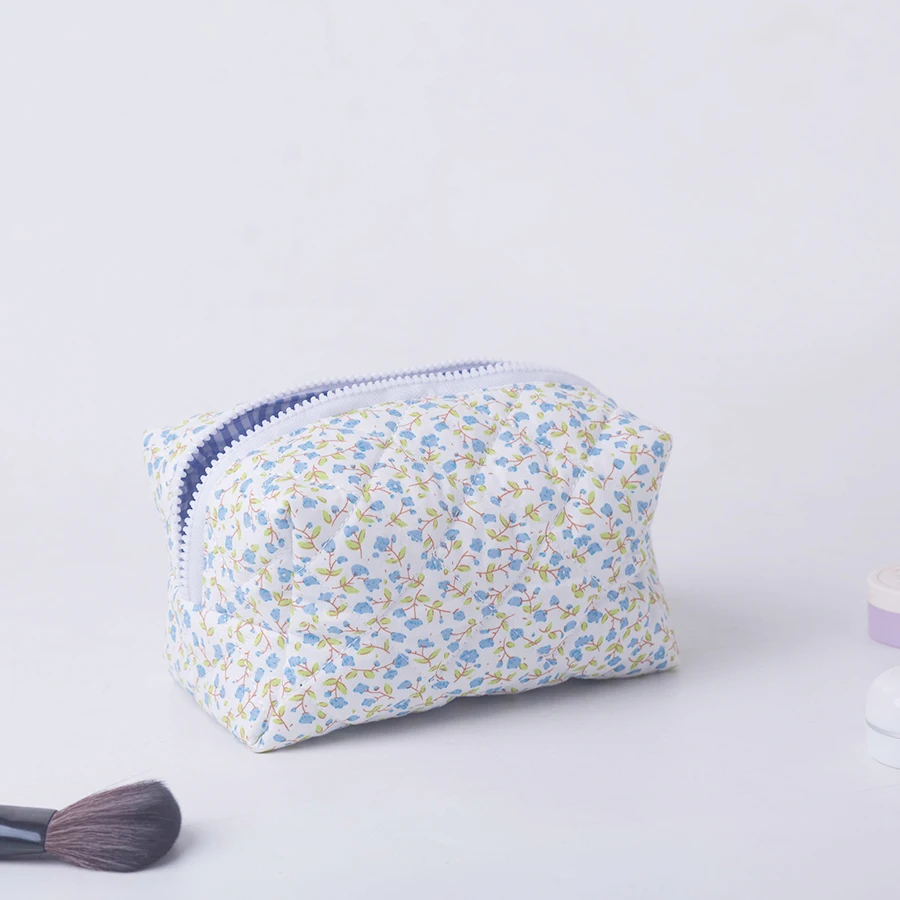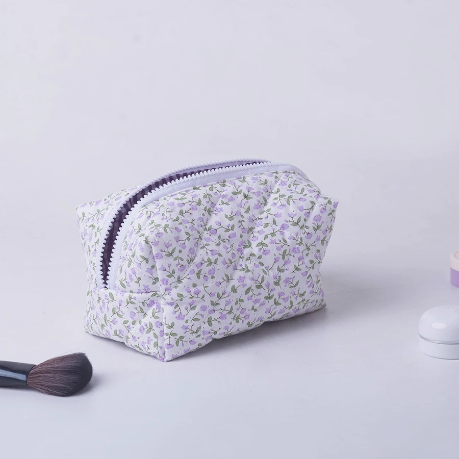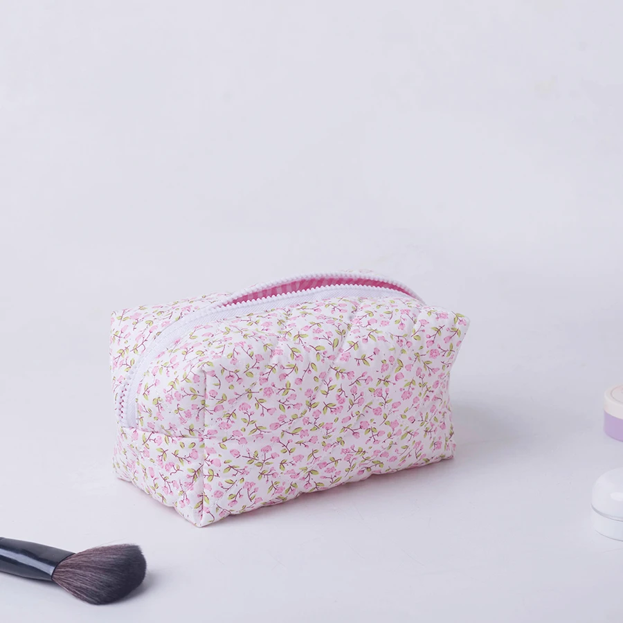 Storage Organizer Floral Puffy Quilted Makeup Bag Flower Printed Cosmetic Pouch Large Travel Cosmetic Bag Makeup Accessory