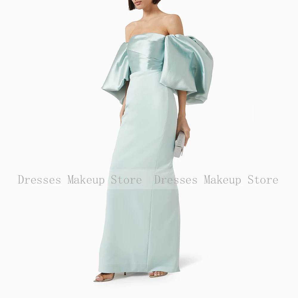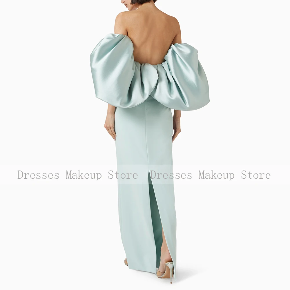 Customized Sky Blue Wedding Guest Dresses for Women Off the Shoulder Puff Sleeve Formal Gowns Long Backless Column Evening Dress