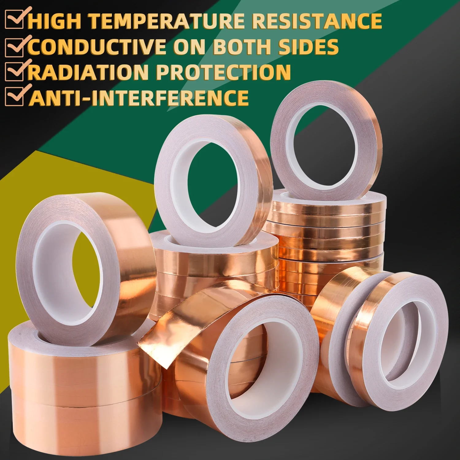 20m Doubel Side Conductive Copper Foil Tape Adhesive Strip Heat Shield Eliminate EMI Anti-static Repair Tape 0.05mm Thickness