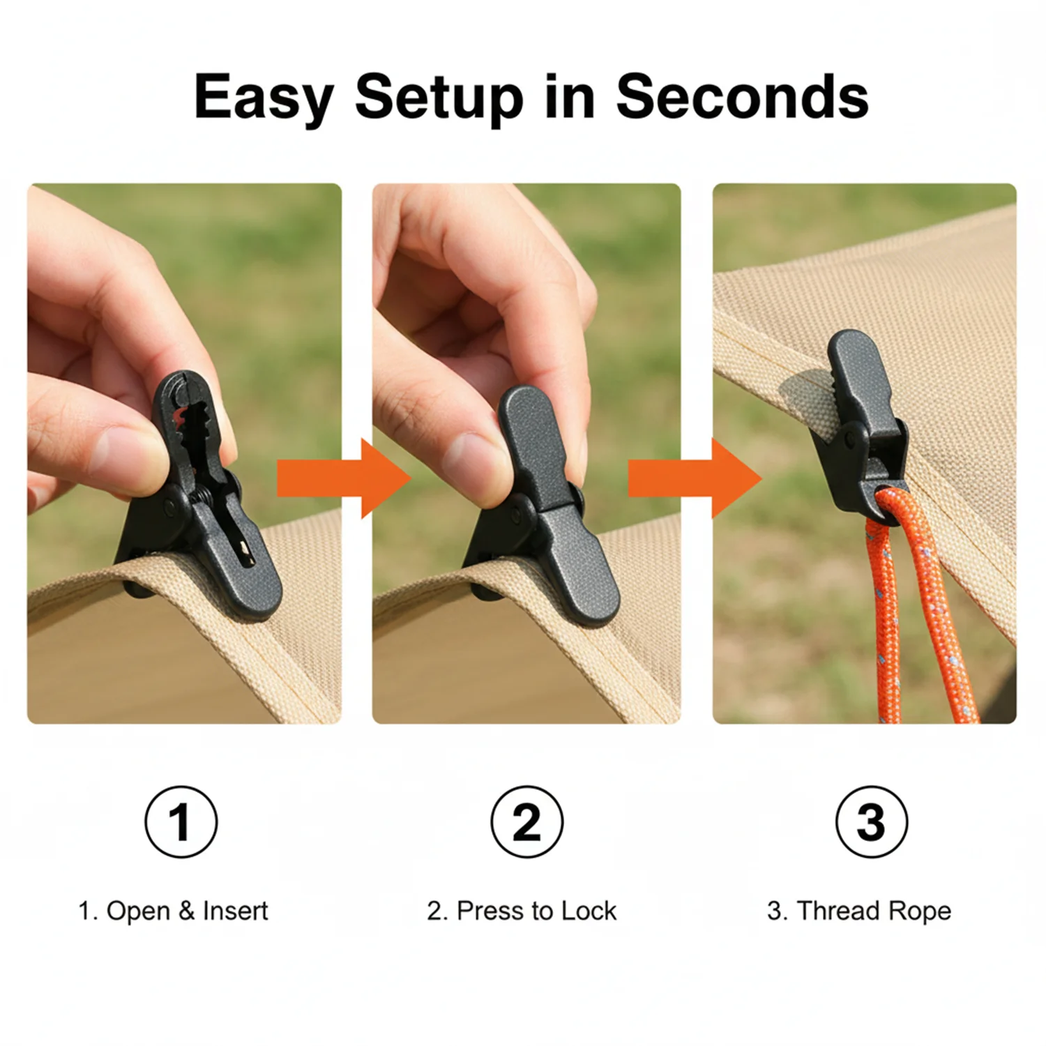 Sturdy Anti-Wind Tent Clips, Heavy Duty Camping Clamps for Securing Tarpaulin & Tent Outdoor Fixing Crocodile Clips, 10/20/50pcs