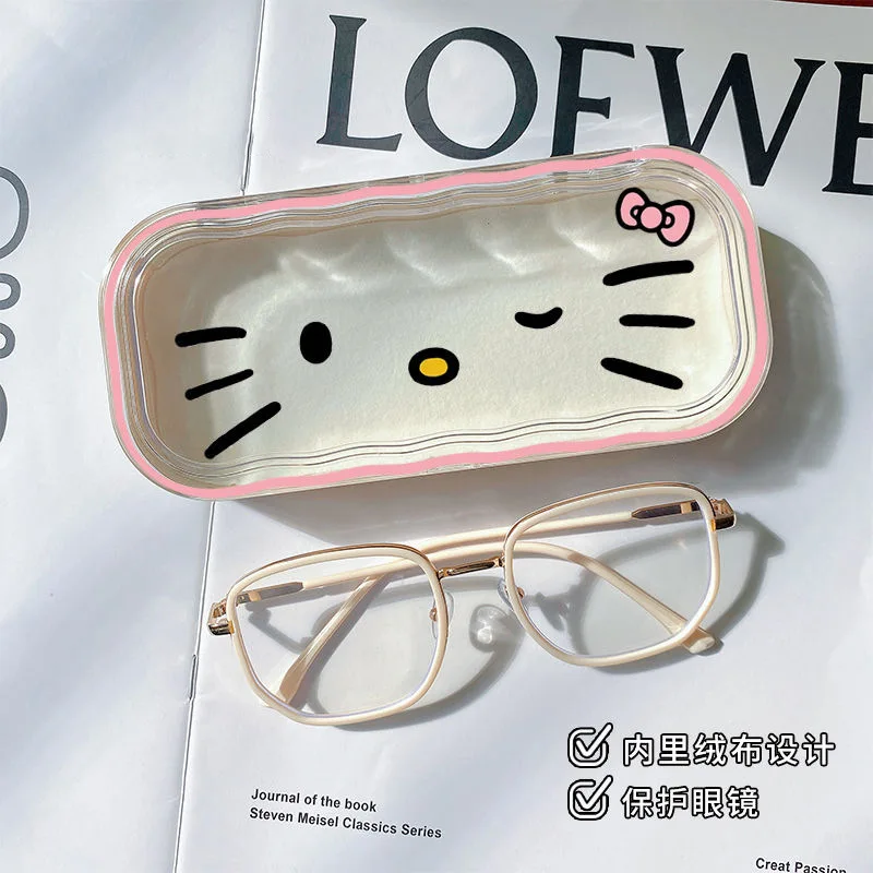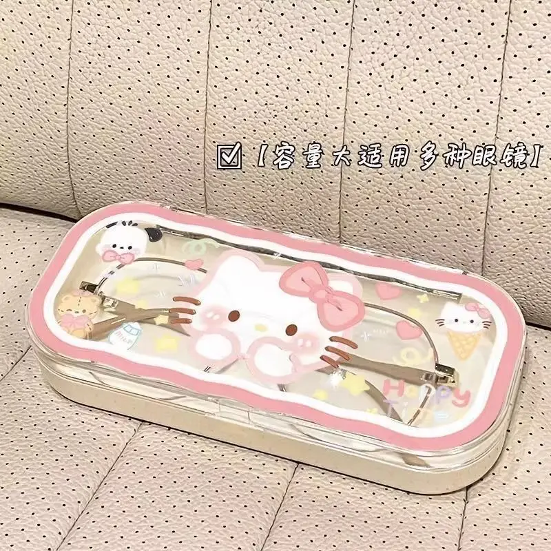 Sanrio Hello Kitty Glasses Storage Box Anime Kawaii Cute Cartoon Girly Heart Sunglasses Protective Case Gifts for Girls