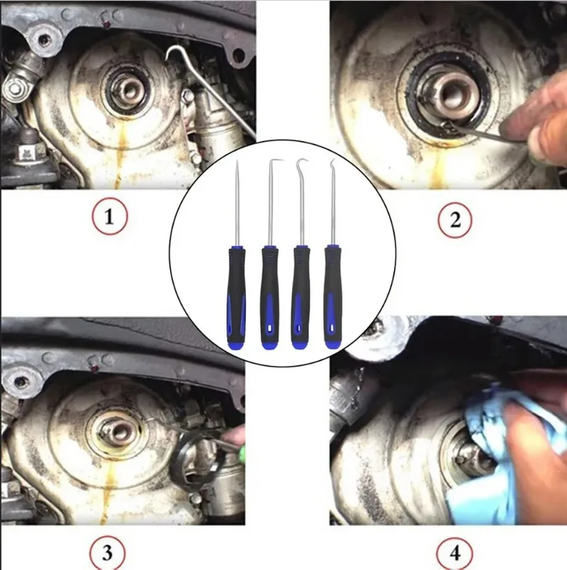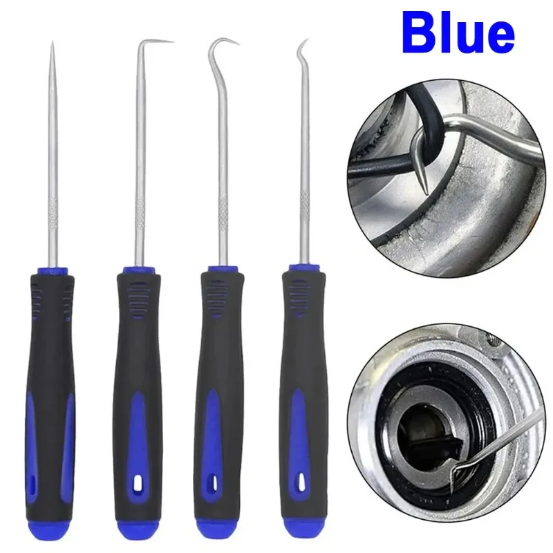 4PCS 165mm Blue Car Oil Seal Screwdriver Set Hose Removal Hook Set O-Ring Seal Gasket Puller Remover Pick Hooks Repair Tools