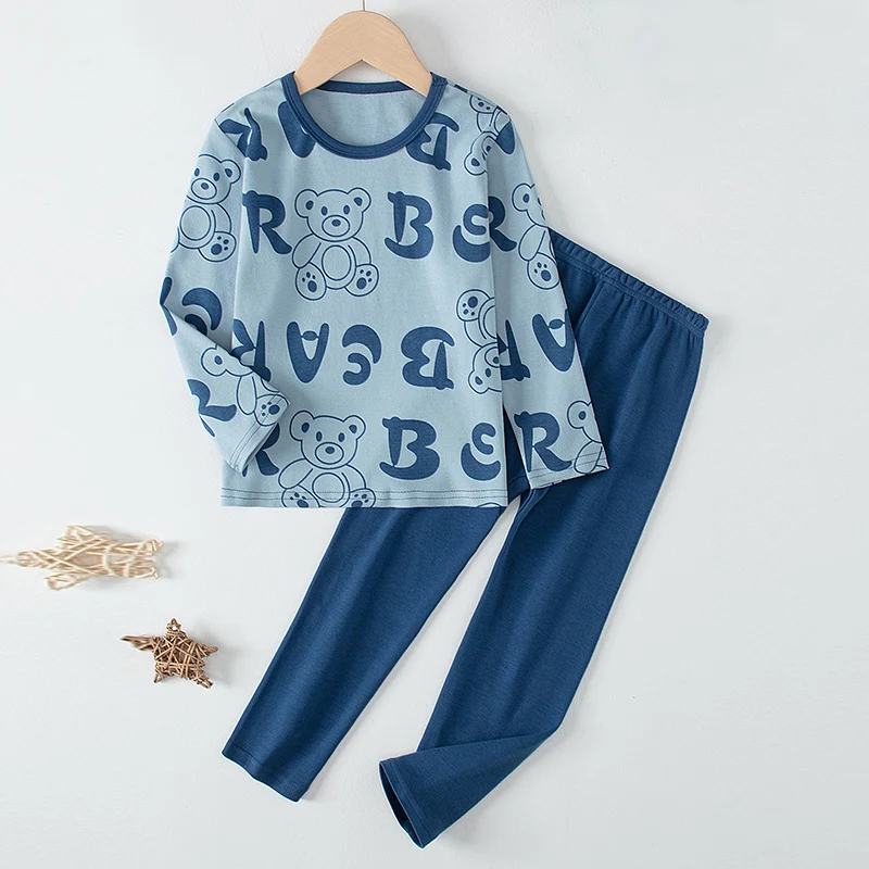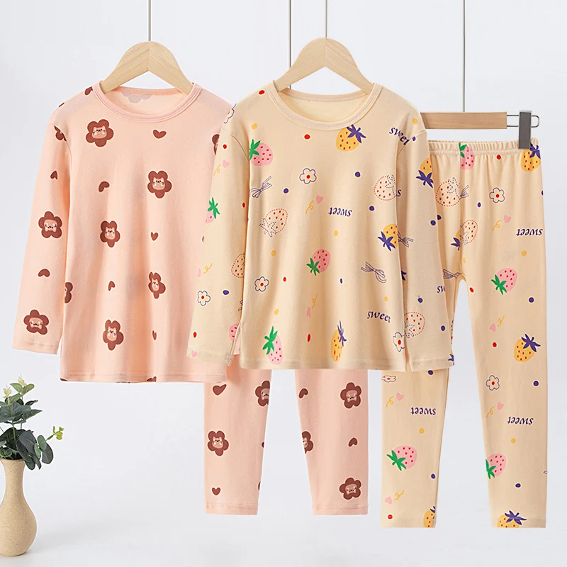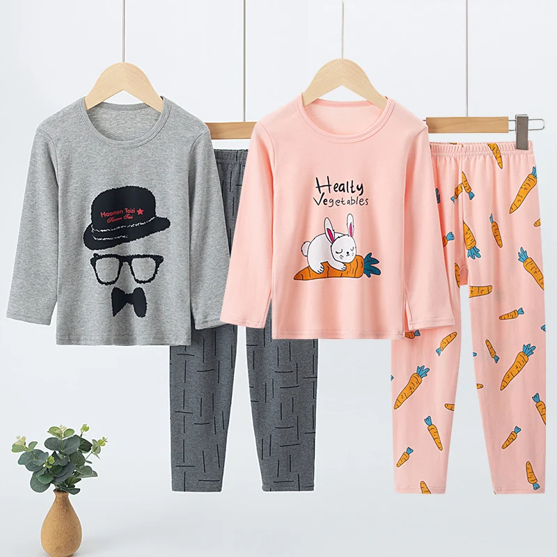 2 Pack 2024 new autumn and winter long-sleeved trousers cotton thermal underwear suit boys and girls leisure and comfortable sui