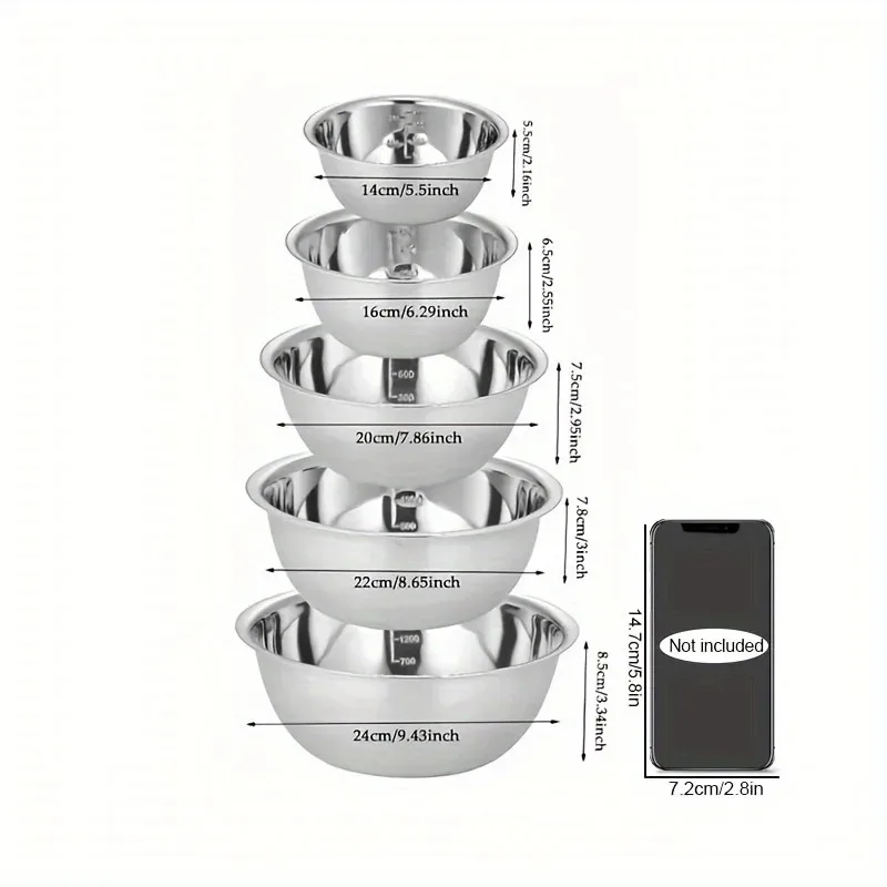 5, stainless steel mixing bowl, cooking bowl, very suitable for cooking, baking, home kitchen cooking basin, fruit bowl, noodle
