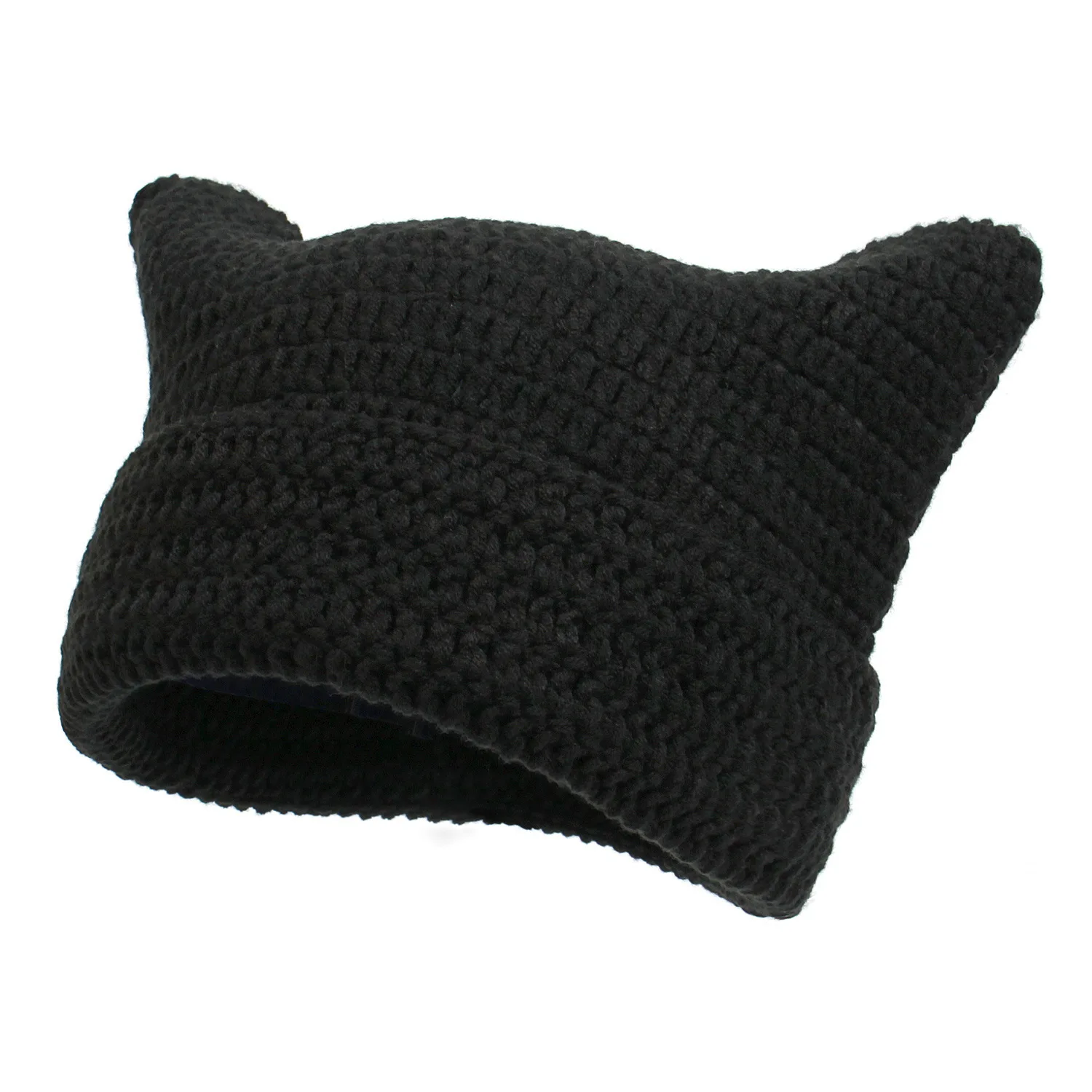 1pc Little Devil Striped Knitted Hat,big Head Circumference Knitted Hat,cute Cat Ears Pointed Hat,head Protector Hat for Parties
