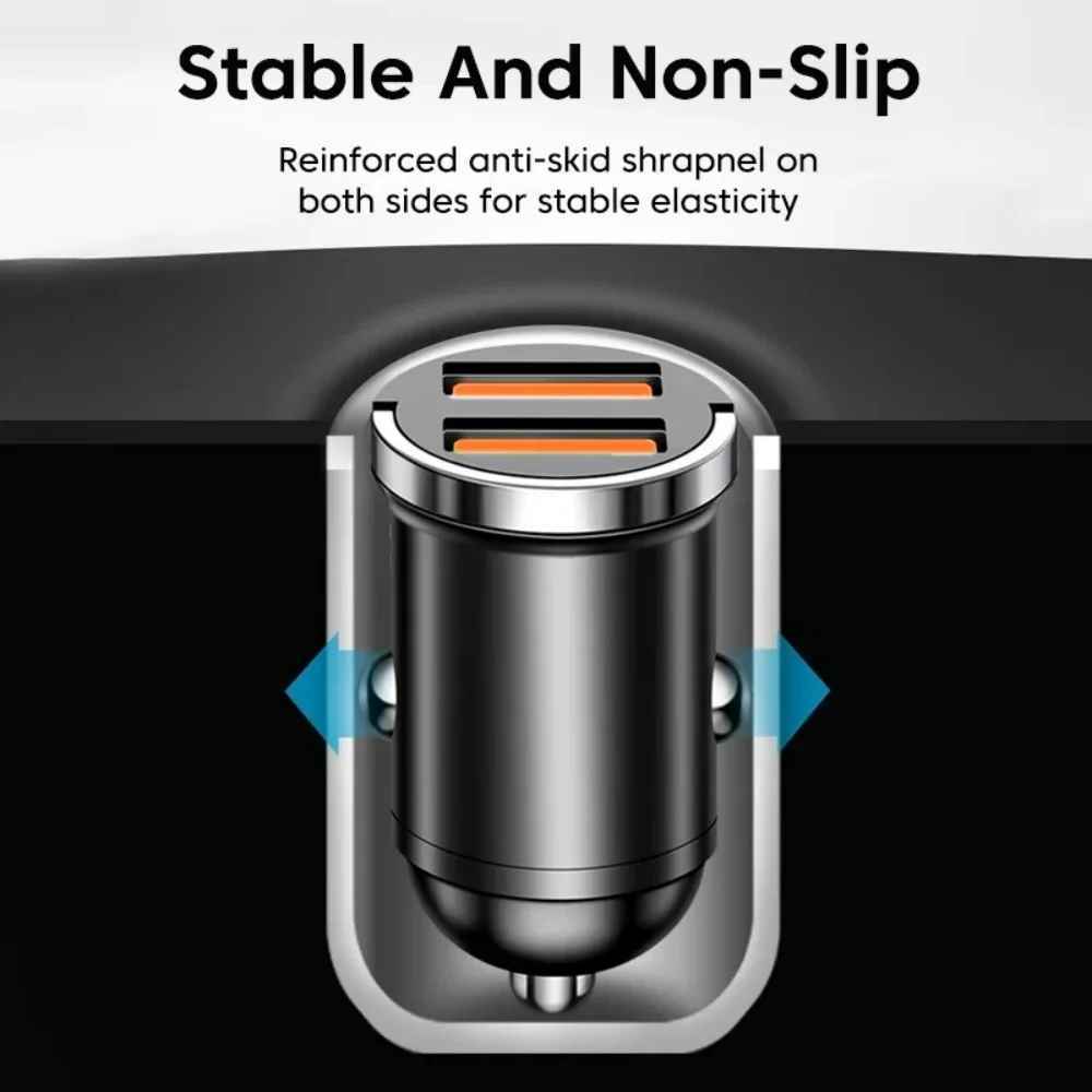 Total 200W Mini Dual Ports USB Car Charger Lighter Fast Charging Car Phone Adapter for iPhone 13 12 Xiaomi 14 15 Huawei Samsung