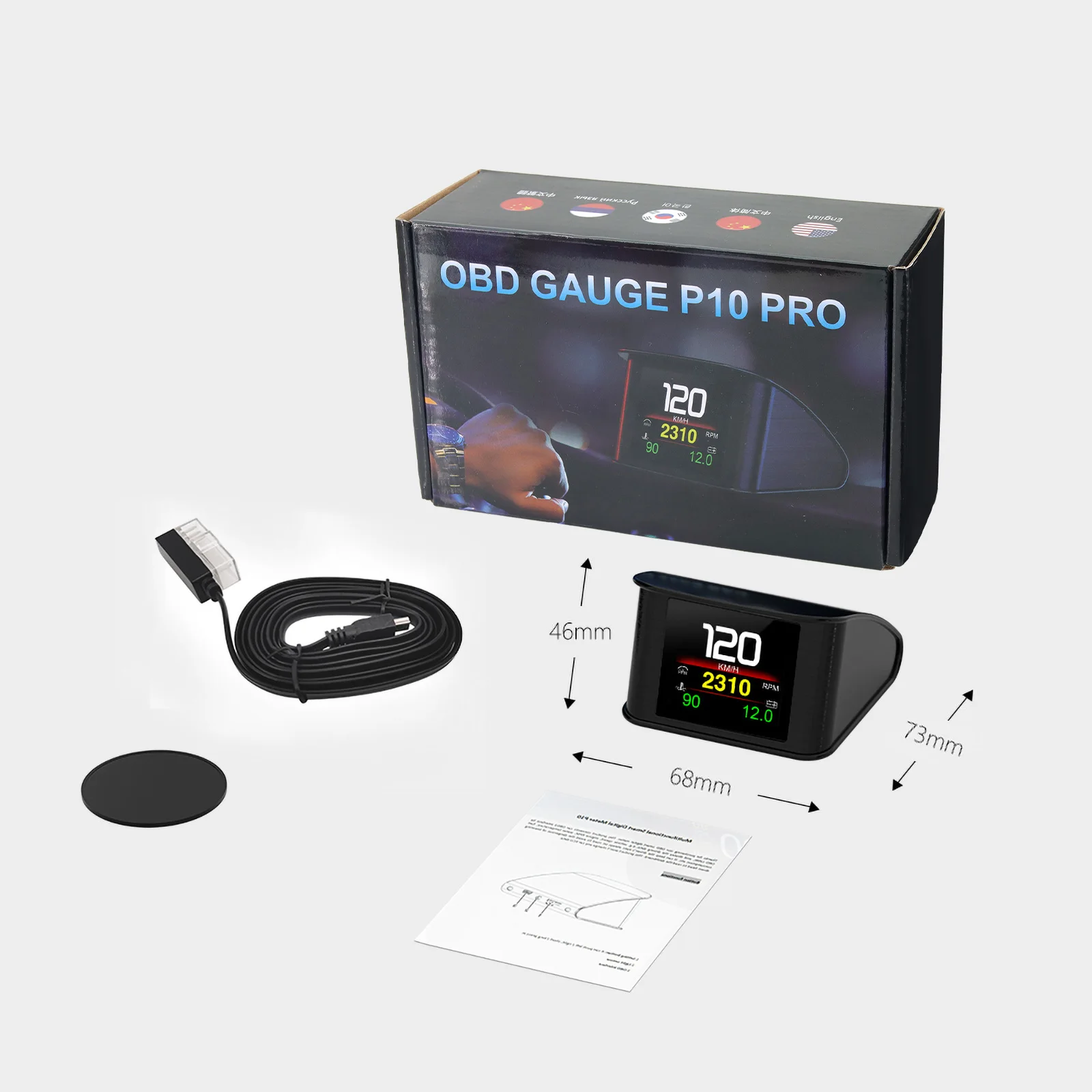 P10 Pro Head Up Display On-board Computer Car Digital OBD2 Mileage OBD Driving Computer Display Speedometer Temperature Gauge