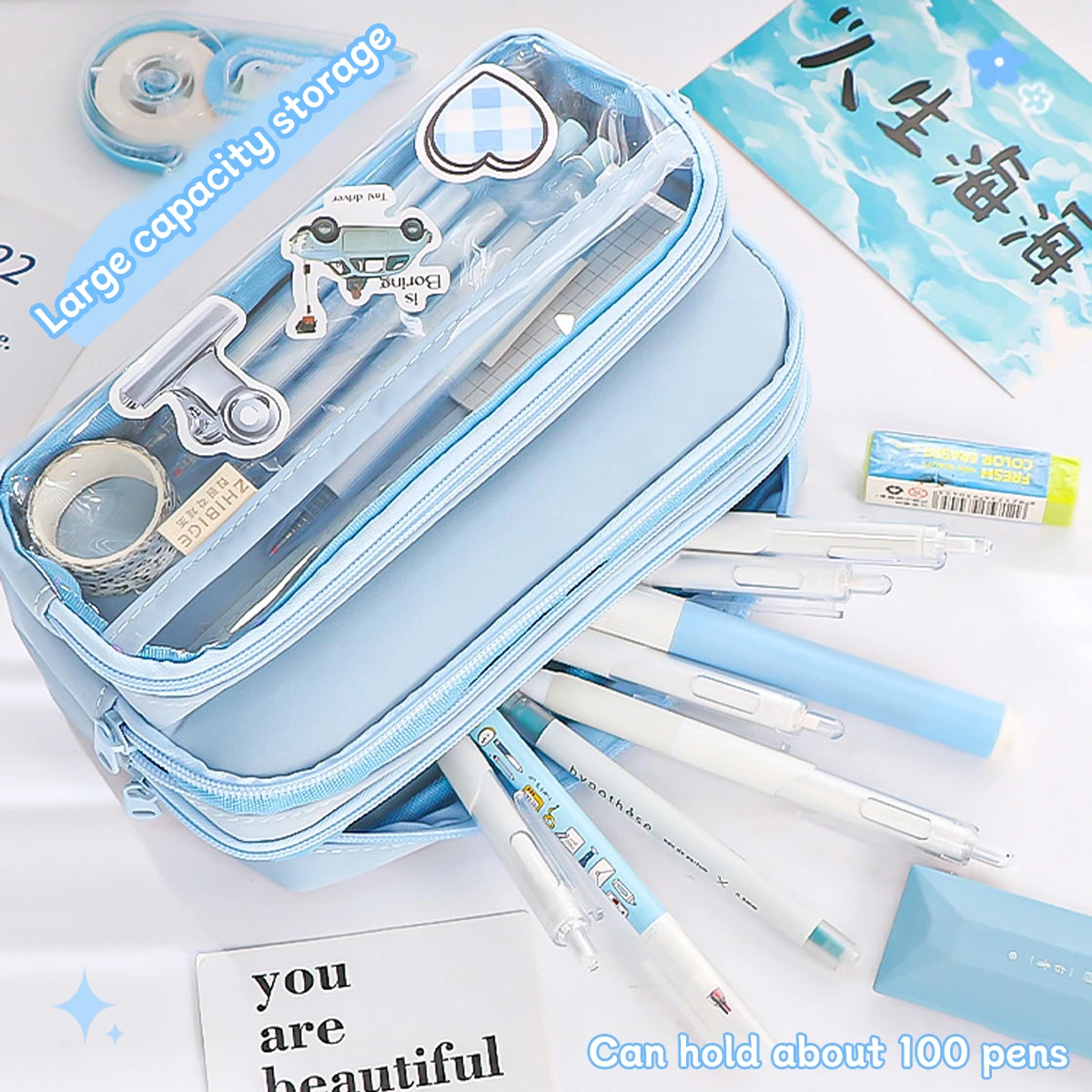 aliexpress , ali , shop , ali shop , online , store , online shop , online store , buy , sell , Large Capacity Kawaii Pencil Case Simple Transparent Pen Bag Flip Cover for Studnets Back To School Office Supplies Stationery