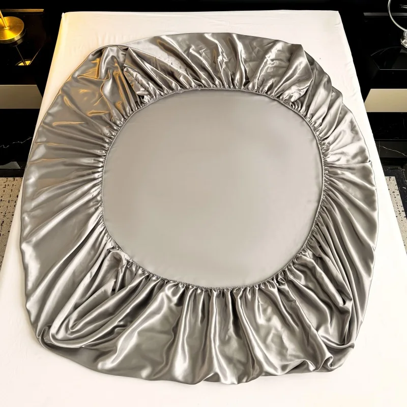 2025 new machine washable ice silk fitted sheet solid color cool silk mattress protective cover single piece no pillowcase