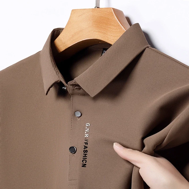 New Men's Short Sleeved Solid Color POLO Shirt Breathable and Comfortable Elastic Top