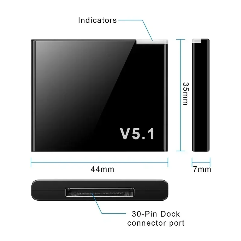 VIKEFON I-WAVE 30 Pin Bluetooth 5.1 Audio Receiver A2DP Music Mini Wireless Adapter For iPhone iPod 30Pin Jack Analog Speaker