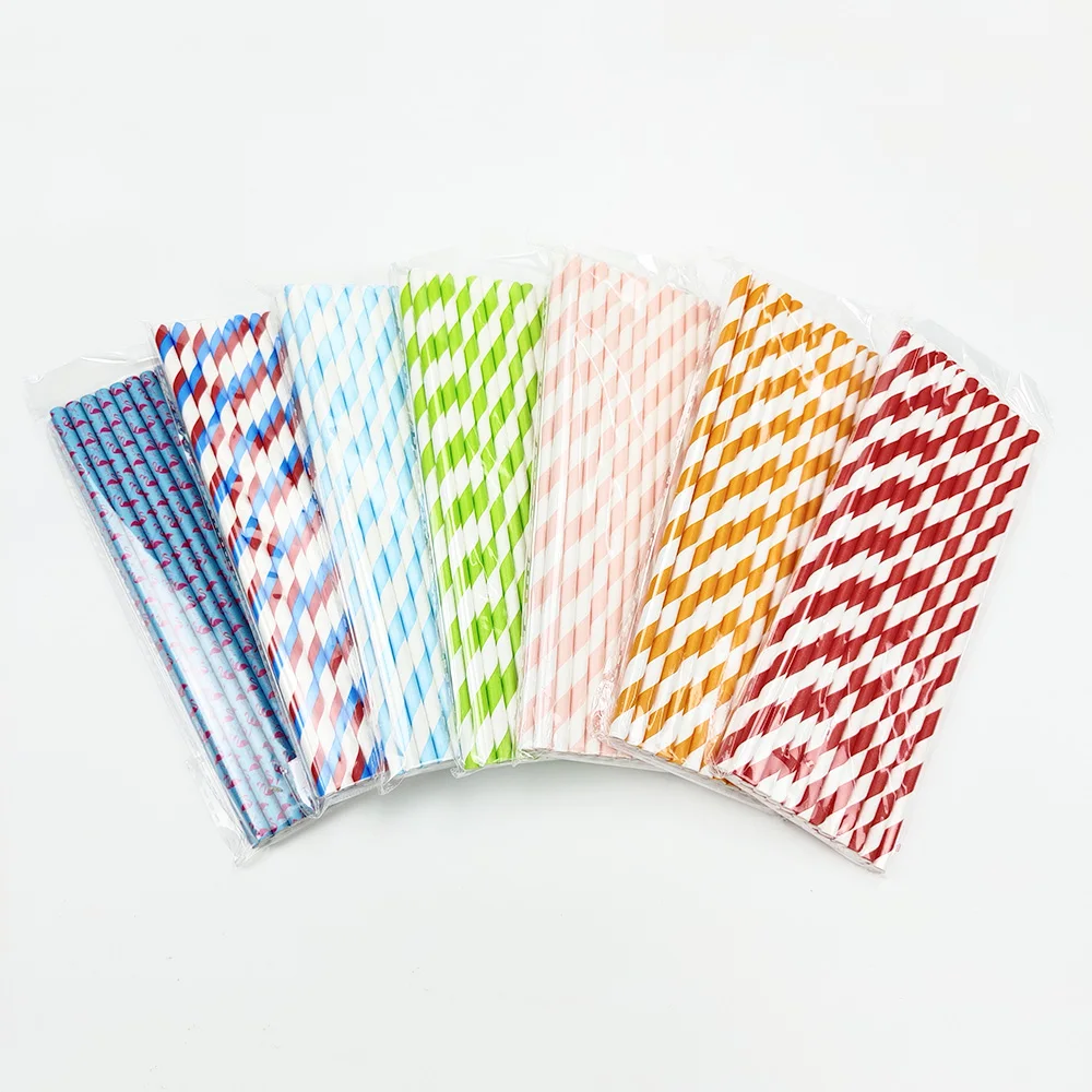 25Pcs Colorful Disposable Paper Straws Pink Blue Drinking Straws Juice for Kid Birthday Wedding Party Decor Supplies Baby Shower