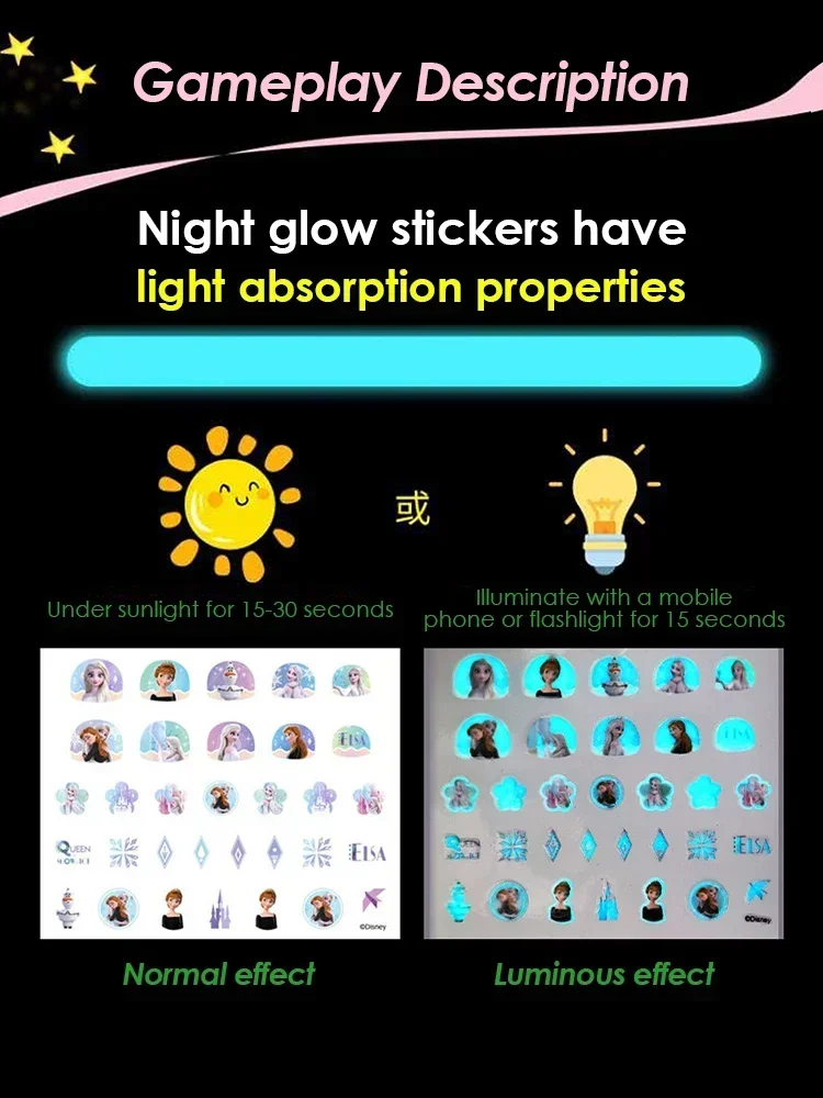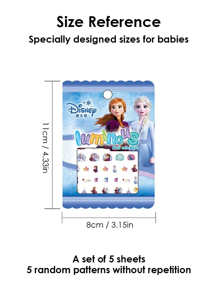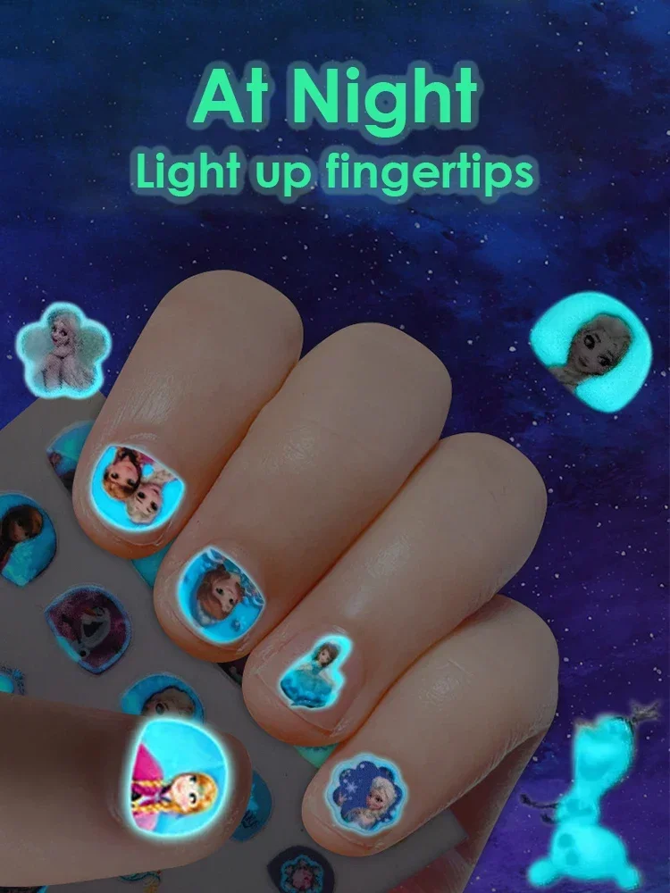 Disney Girls and Children's Nightglow Nail Stickers Ice and Snow Romance Princess Elsa Nail Stickers Cartoon Sticker Toys