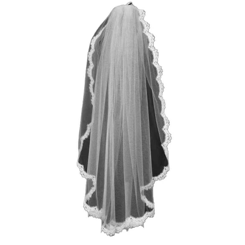 Wedding Bridal Veils Small Eyelash Lace Flower Edge Tulle Elbow Fingertip Length Veil Bride Hair Accessories Comb
