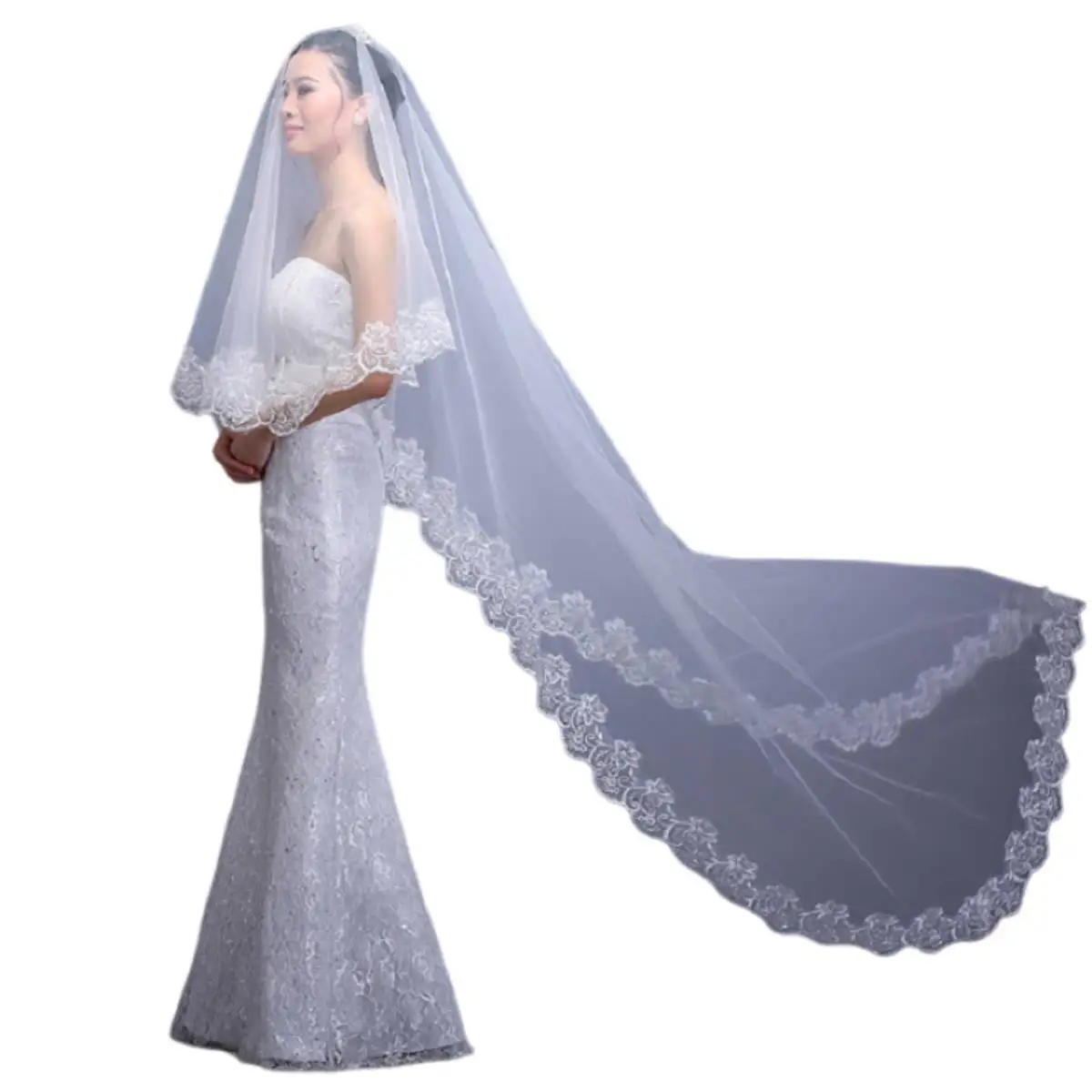 ALI shop - search results ... ... 108'' Long Bridal 1 Layer Lace Edge Cathedral Veil Soft Tulle Wedding for Brides Shower ::: 2021 ::: :::