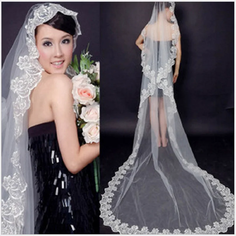 aliexpress , ali , shop , ali shop , online , store , online shop , online store , buy , sell , 108'' Long Bridal 1 Layer Lace Edge Cathedral Veil Soft Tulle Wedding for Brides Shower