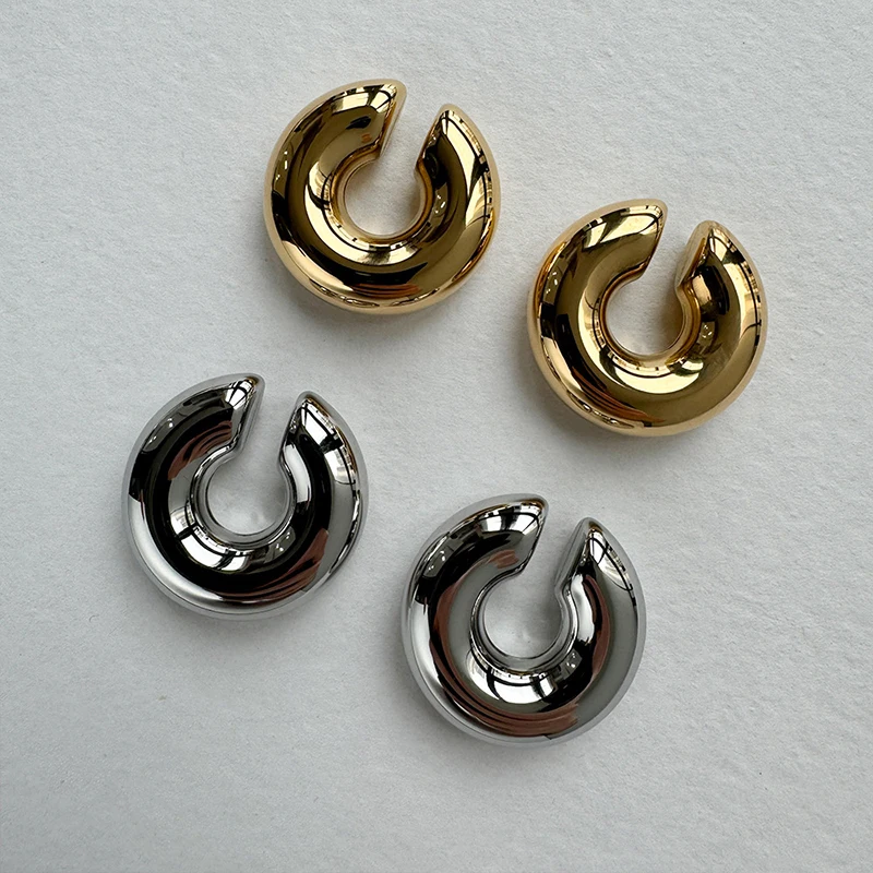 1 Pair Smooth Round C Shape Clip On Women Earrings Lightweight Without Piercing Cartilage Ear Cuff Gold Silver Color Earrings