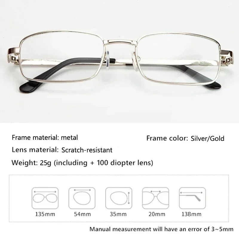 Design Reading Glasses Men and Women Full-frame Alloy Clear HD Lenses Presbyopia Eyeglasses Impact Scratch Resistant 0 ~ +400