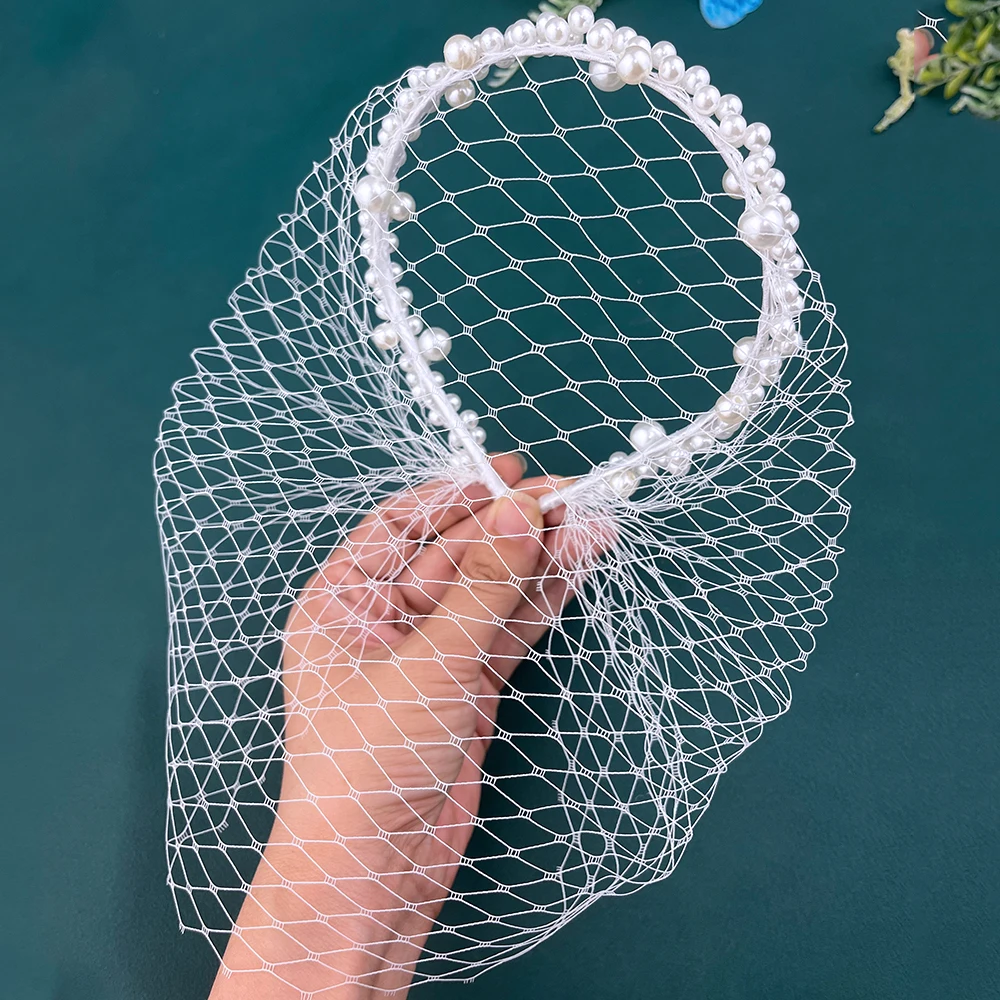 JM26 Tulle Cage Veil with Pearls Wedding Birdcage Veil with Headband face Cover Bride Headdress Wedding Accessories Mariage