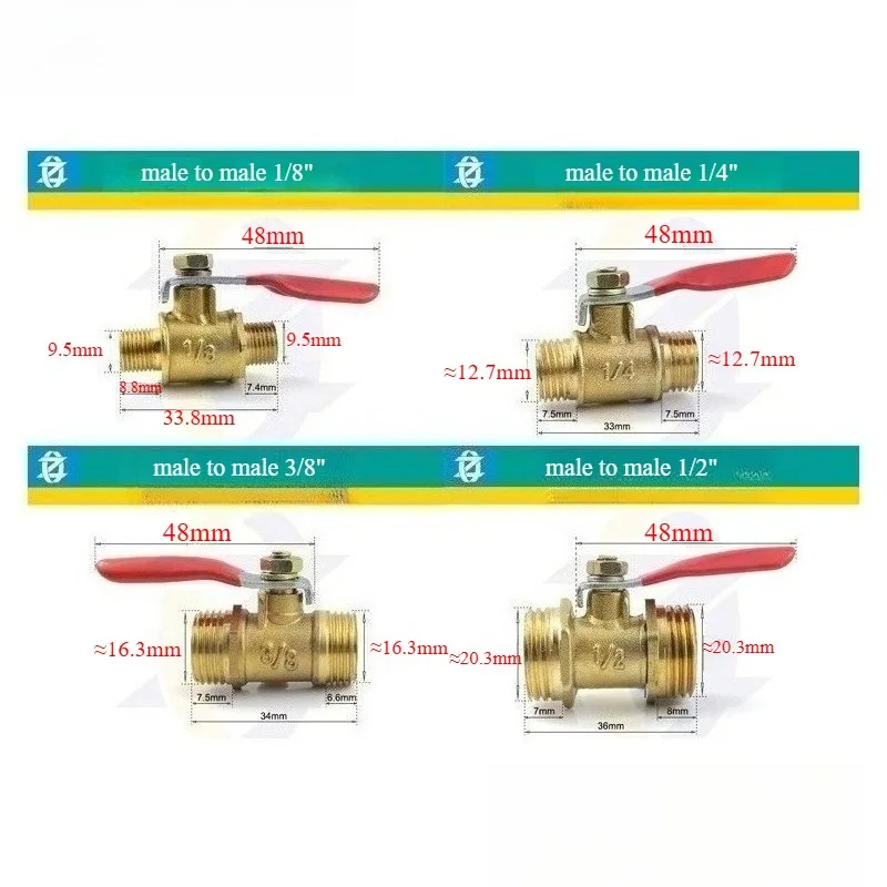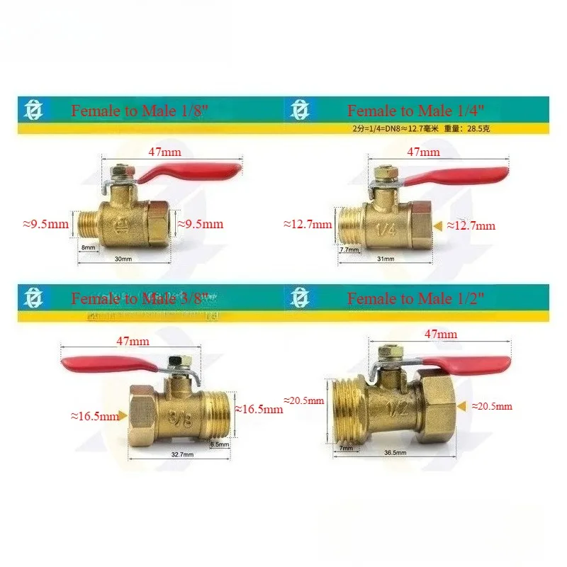 1/8'' 1/4'' 3/8'' 1/2'' Brass small ball valve Female/Male Thread Brass Valve Connector Joint Copper Pipe Fitting Coupler Adapter