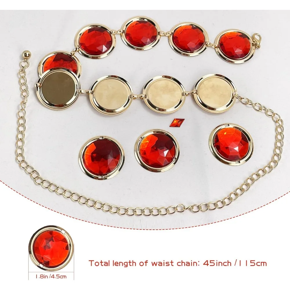 5 Pcs Women's Anime Cosplay Waist Belt Red Gems Belt Stone Chain for Halloween Costume Accessories