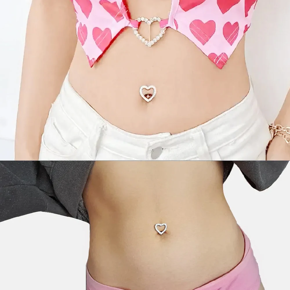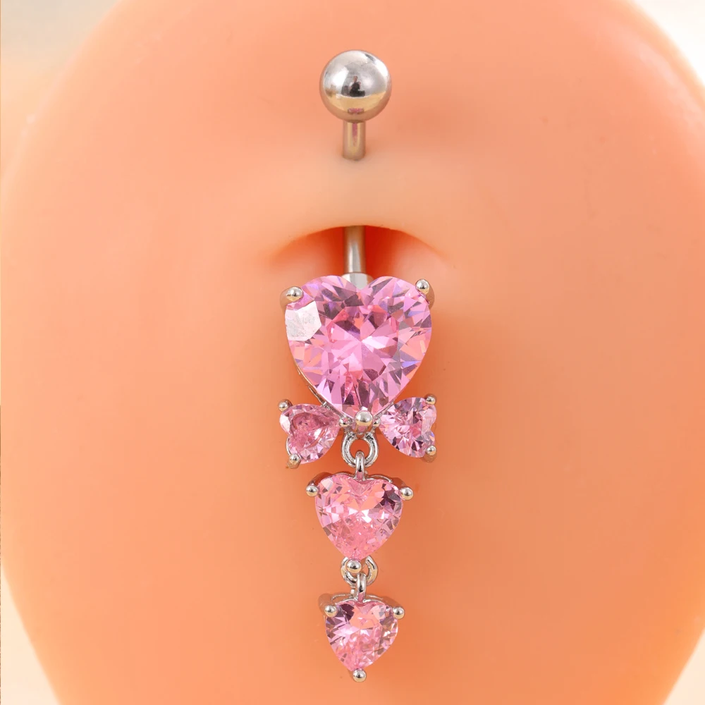 3-5pcs Mixed-Style Sets Heart Flower Dangle Belly Button Rings Stainless Steel Butterfly Curved Zircon Belly Piercing Navel Ring