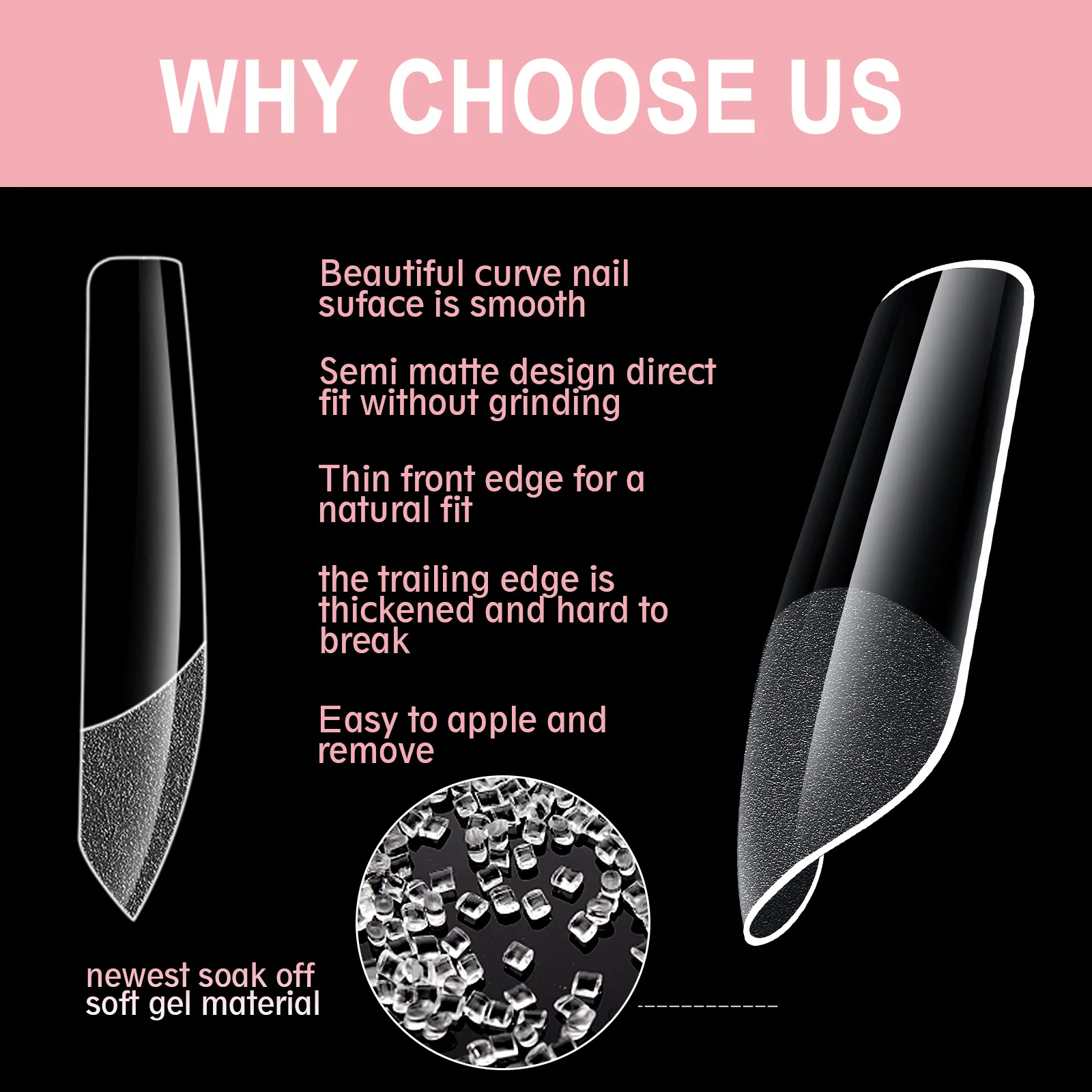 600pcs Soft Gel Nail Tips, Half Matte Clear Acrylic Nail Tips Pre-shaped False Nail Tips For Nail Extension Manicure Tools