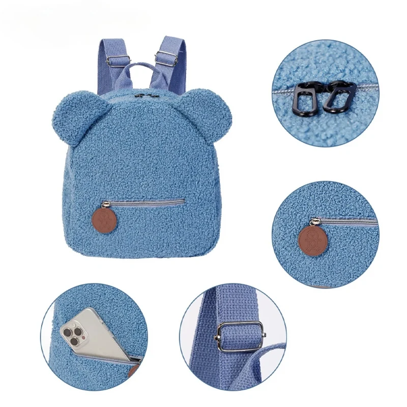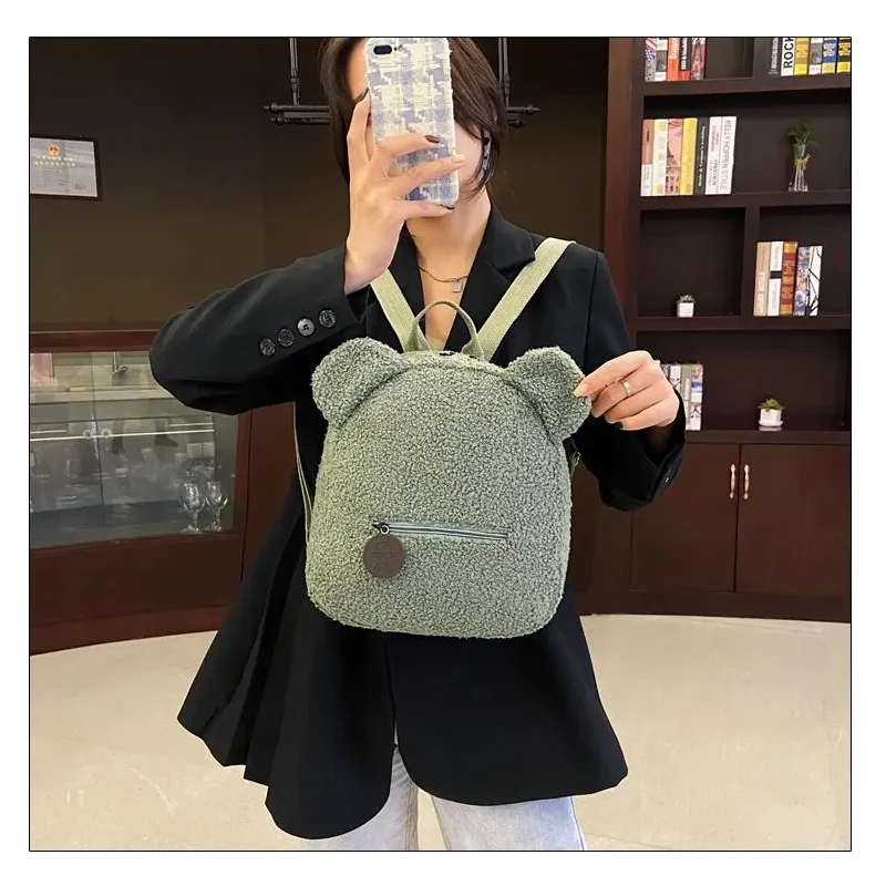 Plush Bear Backpack Women Sweet Travel Bag Cute Cartoon Backpack Gift Bag Fashionable Leisure Small Bear Ear Backpack