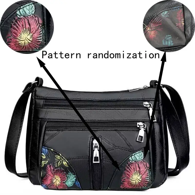 aliexpress , ali , shop , ali shop , online , store , online shop , online store , buy , sell , Women's Floral Embroidery Shoulder Bag Multi-zipper Casual Crossbody Bag Lightweight for Daily Shopping Dating Outing