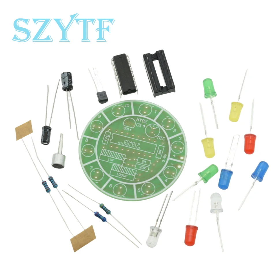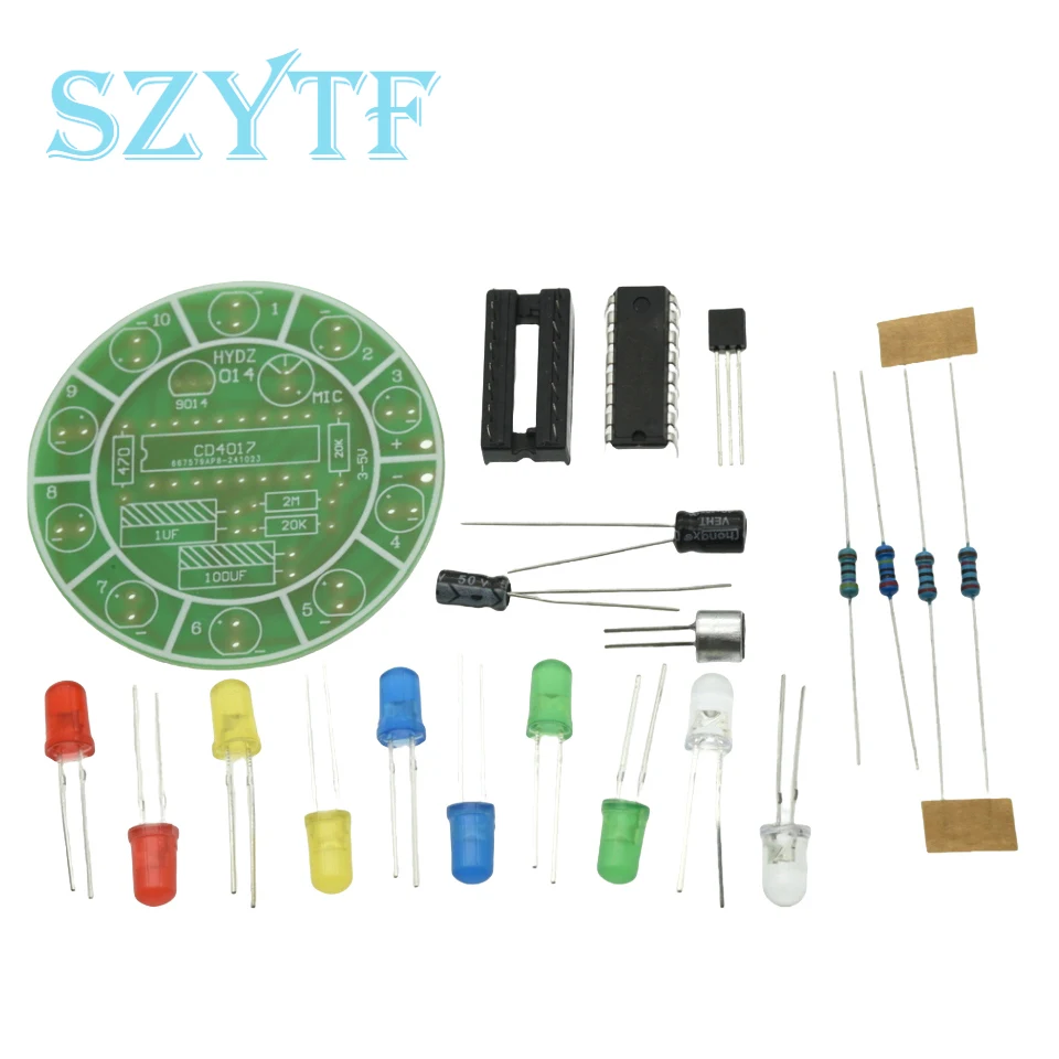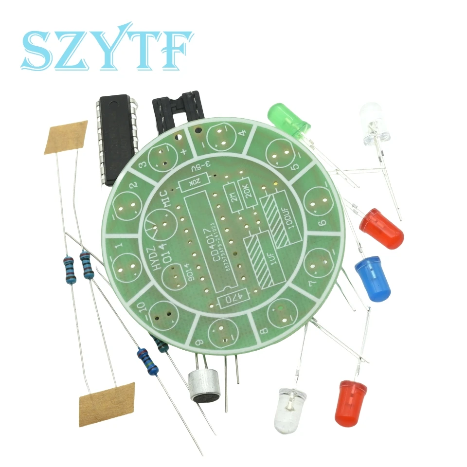 CD4017 Colorful Voice Control Rotating LED Light Kit Electronic Manufacturing DIY Kit Spare Parts Student Laboratory
