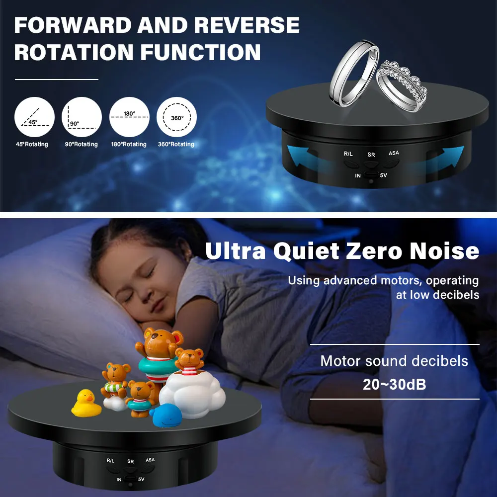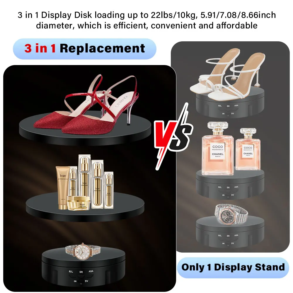New 3 in 1 Electric Turntable Round 360° Rotating Photography Display Stand White Visualizer Product Display Turntable Jewelry