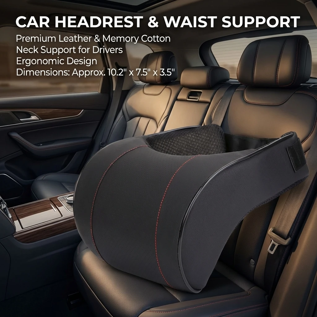 Memory Foam Car Neck Pillow – PU Leather Headrest Cushion for Comfortable Driving, Seat Headrest Pad for Auto Interior