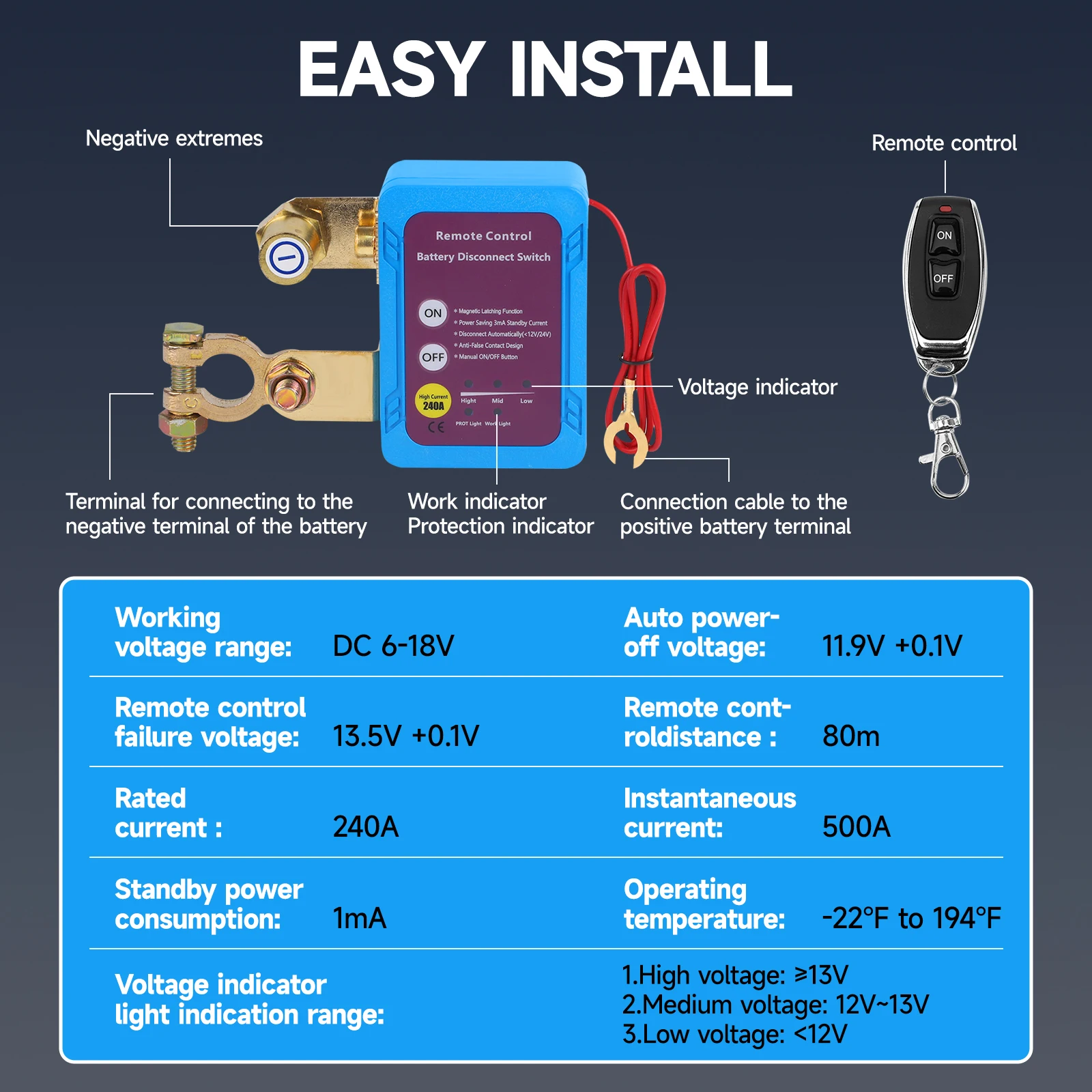 aliexpress , ali , shop , ali shop , online , store , online shop , online store , buy , sell , Car Kill Switch Anti-Theft Remote Battery Disconnect Switch 12v 240A with Smart Voltage for Car Truck RV For Car Truck RV 1 Set