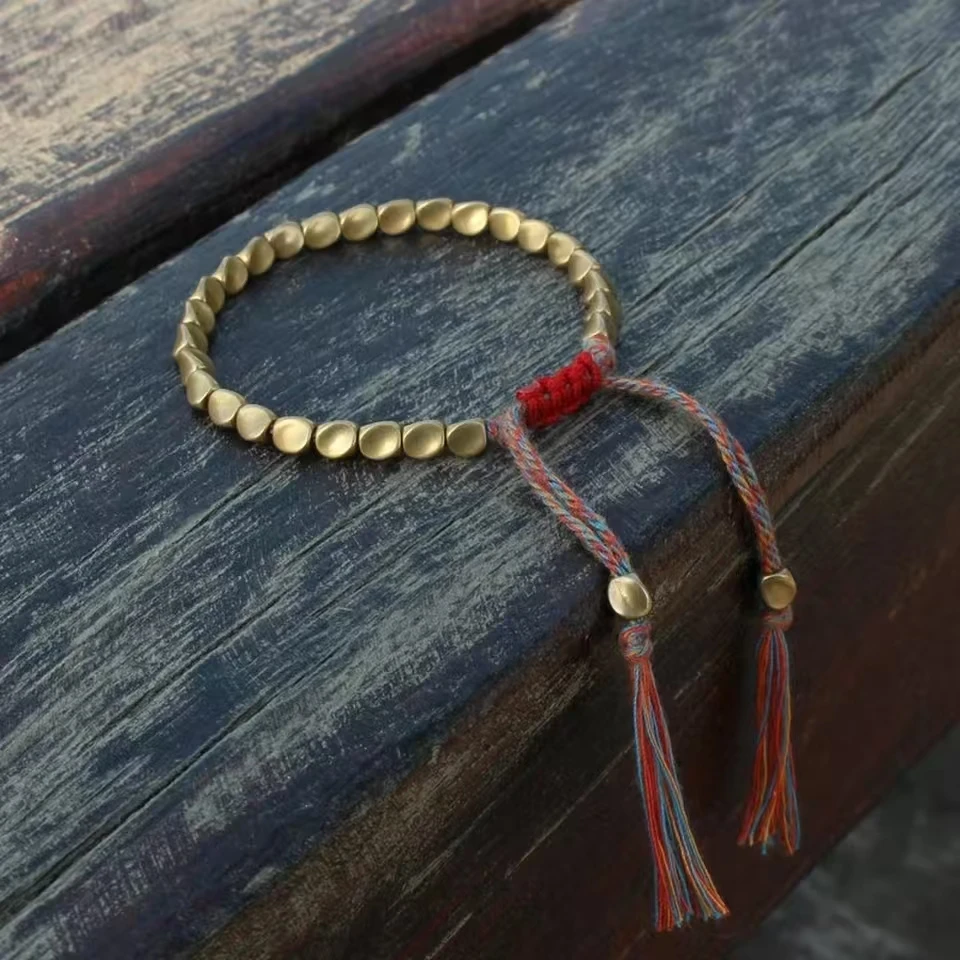 Boho Handmade Brass Bead Tassel Bracelet – Women &Men's Adjustable Red String Jewelry For Lucky & Casual Wear