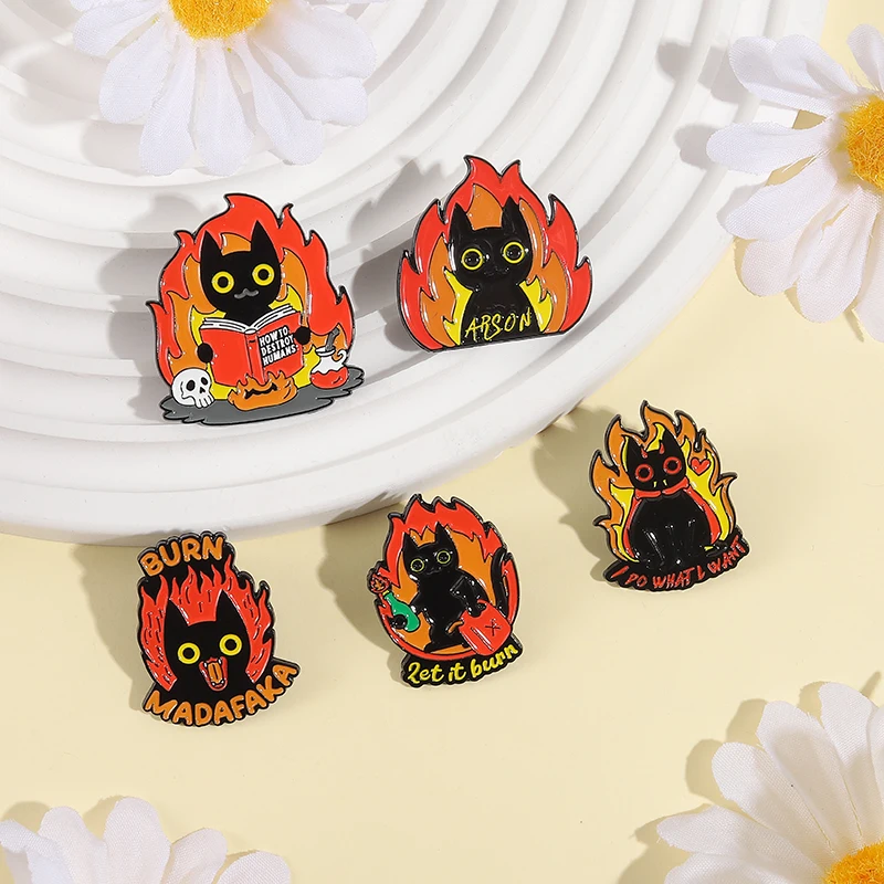 Cartoon Black Cat Enamel Pins PEW PEW MADAFAKAS Big Eyes Kitten Cute Animal Brooches Lapel Badge Jewelry Gifs For Cat Lovers
