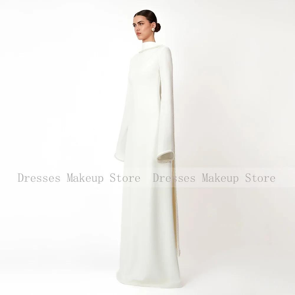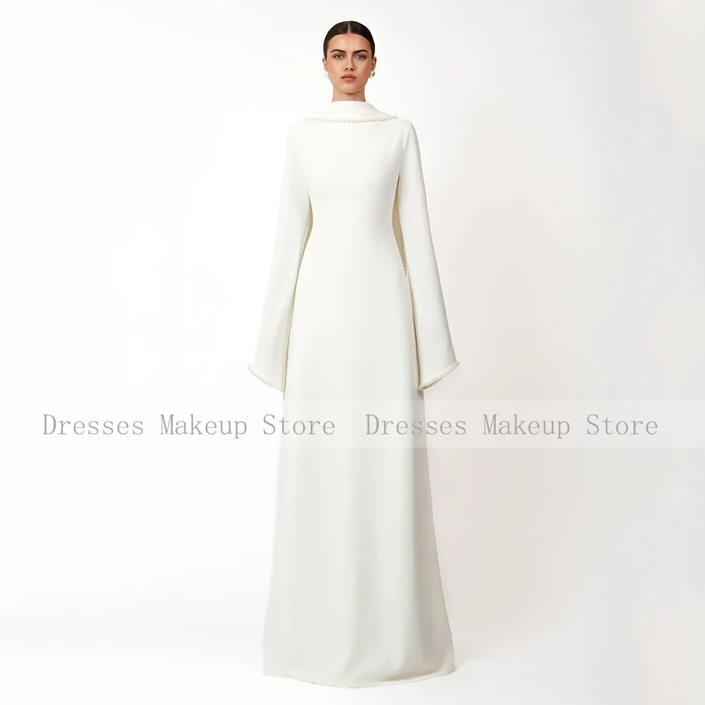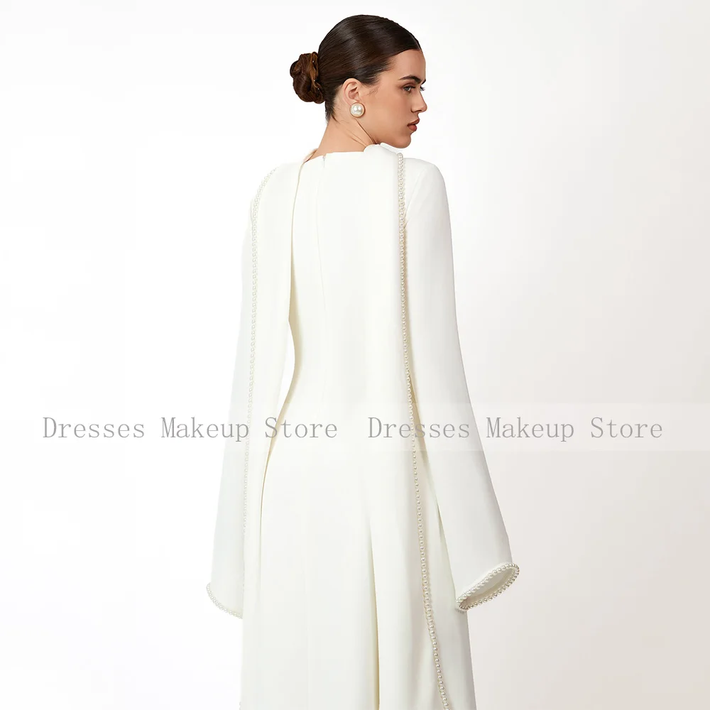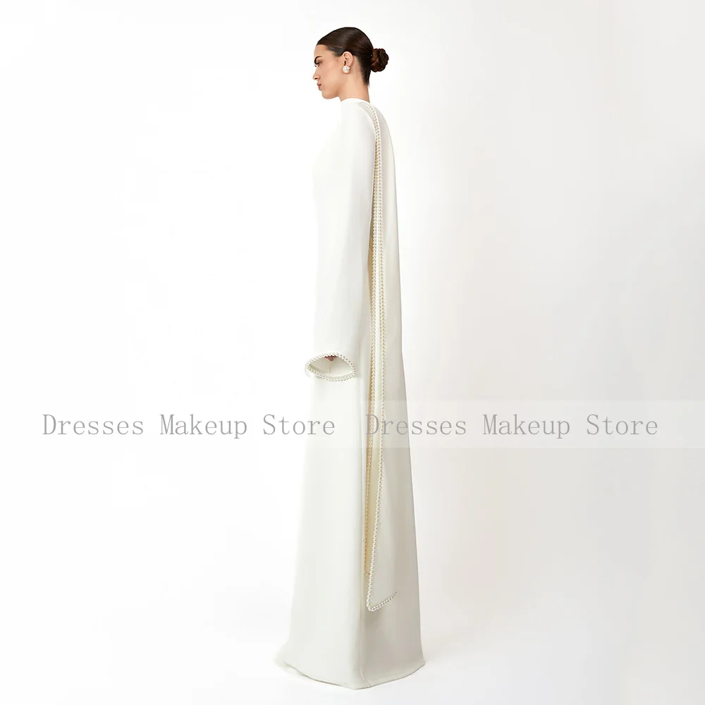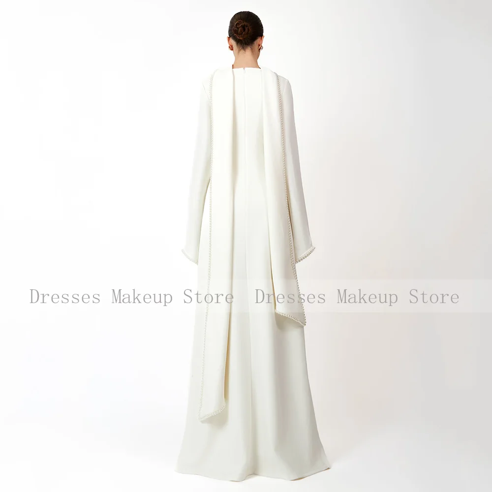 Customized Modest Evening Dresses Long Sleeves O Neck A Line Women's Evening Gowns With Shawl Pearls Elegant Wedding Party Dress