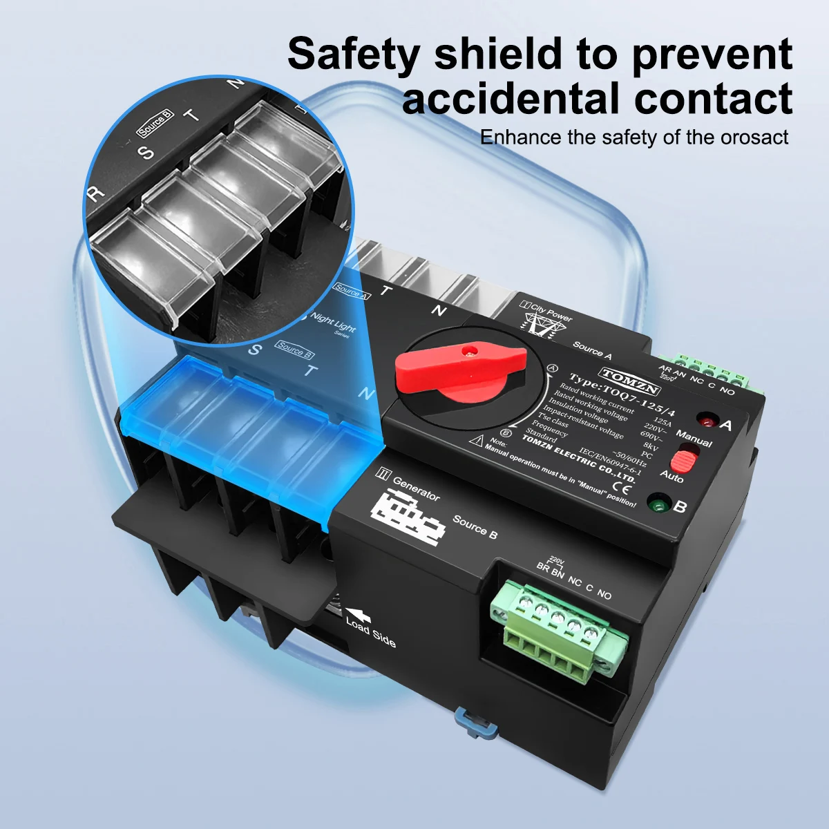 TOMZN Din Rail 2P 3P 4P ATS Dual Power Automatic Transfer Switch Electrical Selector Uninterrupted Power 230V 63A 100A 125A Mini