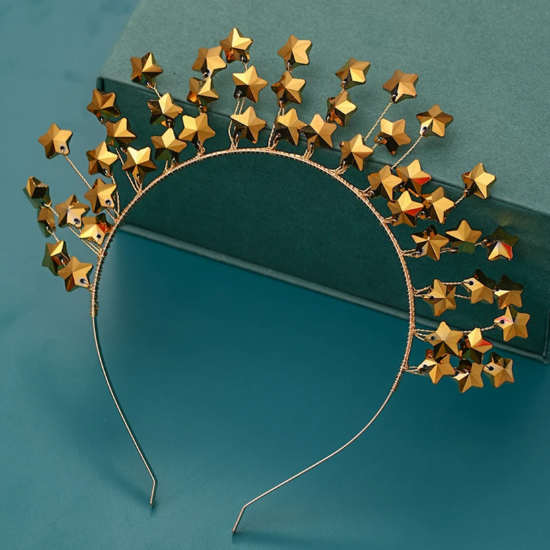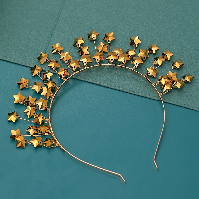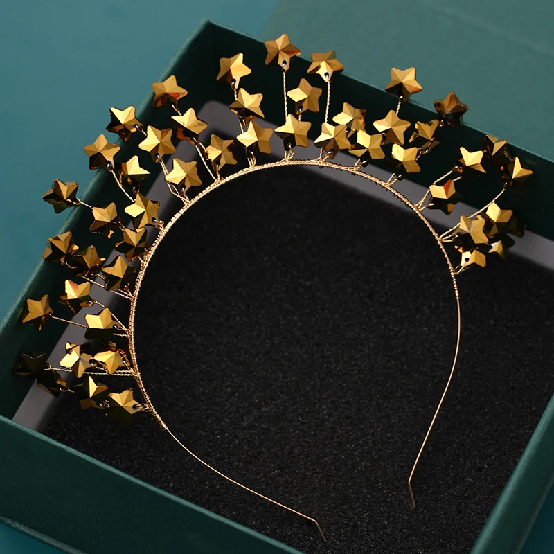 Trendy Star Gold Headband Wedding tiara Bridal Headpiece Women Hair Jewelry Wedding Hair Accessories Handmade